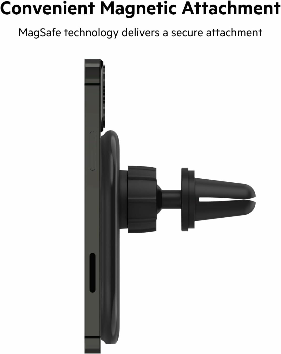 Belkin Boost Charge Magnetic Wireless Car Charger 10W представляет собой автодержатель для смартфонов, который рассчитан для установки в дефлектор автомобиля и имеет функцию беспроводной зарядки. Аксессуар позволяет с комфортом зафиксировать гаджет в любой машине, исключая вероятность его падения. Максимальная мощность модели достигает 10 Вт, а для зарядки используется стандарт Qi. Беспроводное зарядное устройство для автомобиля Belkin Boost Charge Magnetic Wireless Car Charger 10W имеет встроенные магниты, которые надежно фиксируют смартфон. Конструкция модели позволяет установить коммуникатор как в вертикальном, так и в горизонтальном положении. Модель совместима с устройствами iPhone 12 и 13 серии. Высокая прочность крепления гарантирует использование всех функций смартфона, исключая при этом его падение даже при резком торможении автомобиля. С данным аксессуаром крепление смартфона в автомобиле не вызовет каких-либо затруднений. Модель станет отличным решением для зарядки смартфона в дороге и позволит использовать при этом практически все его функции.