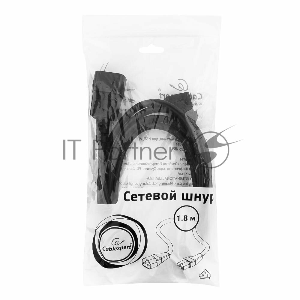 Кабель питания сист.блок-монитор Gembird/Cablexpert 1.8м C13-C14 VDE 10А черный с зазем. PC-189-VDE