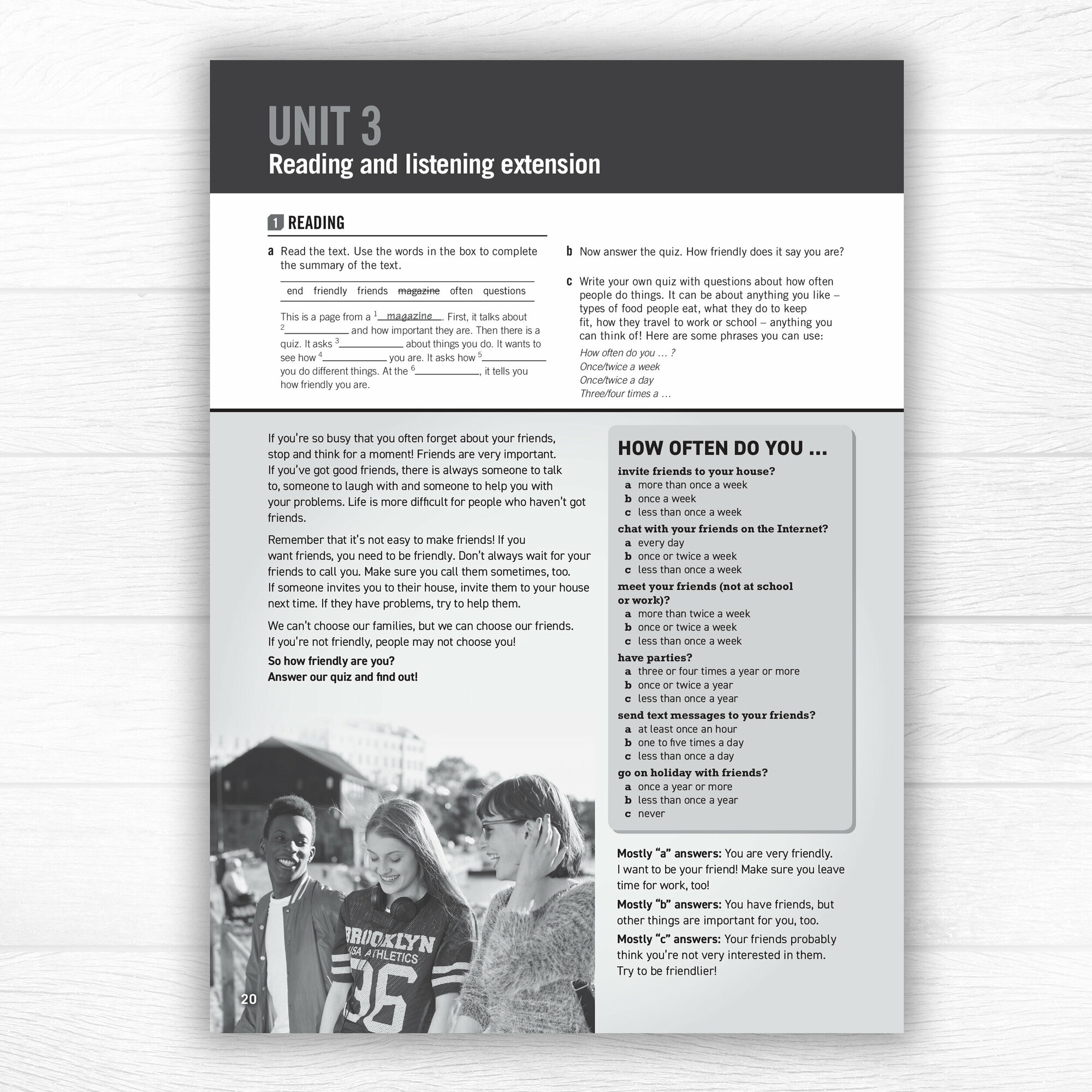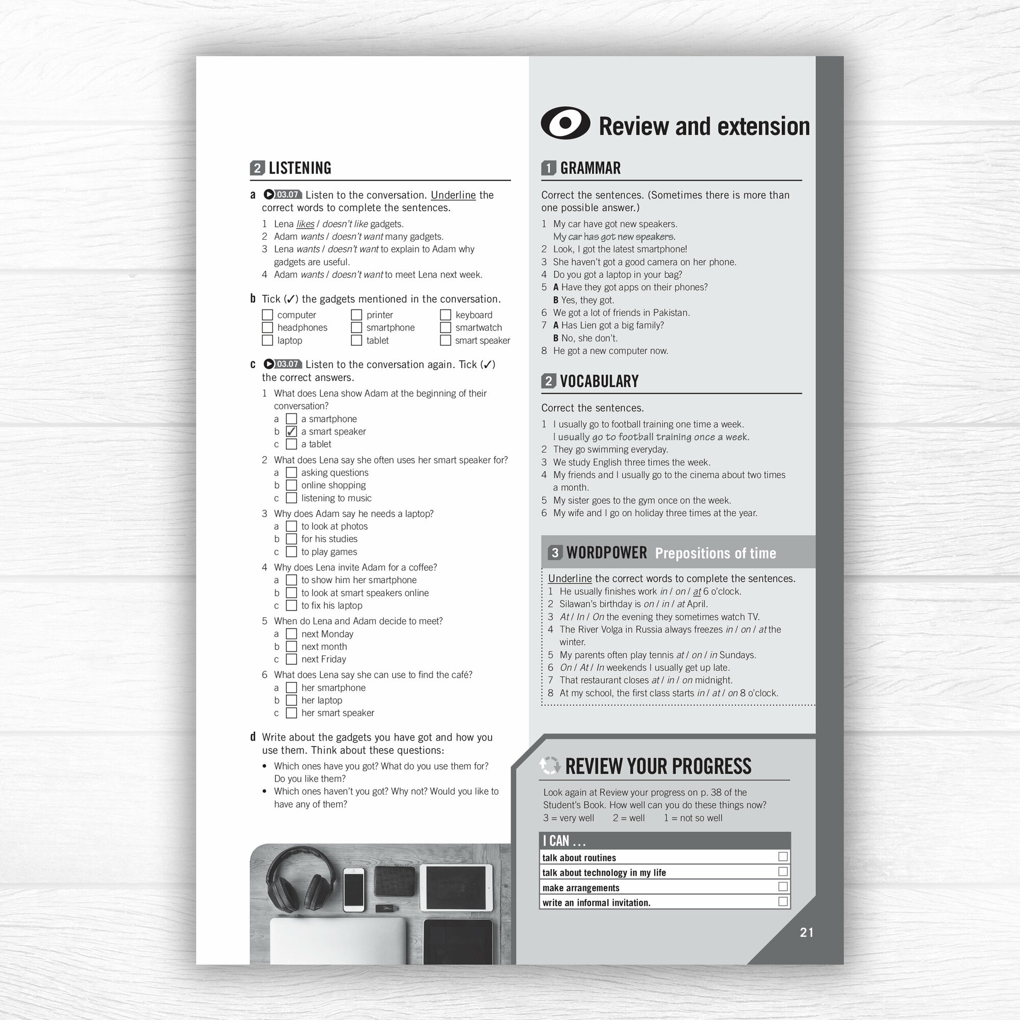 Рабочая тетрадь может использоваться вместе с учебником и предлагает дополнительные занятия по закреплению знаний. Загружаемые аудио и видео из рабочей книги доступны на Cambridge One.