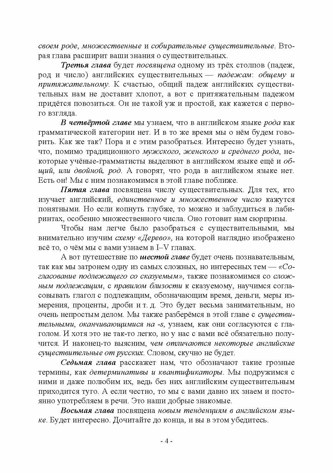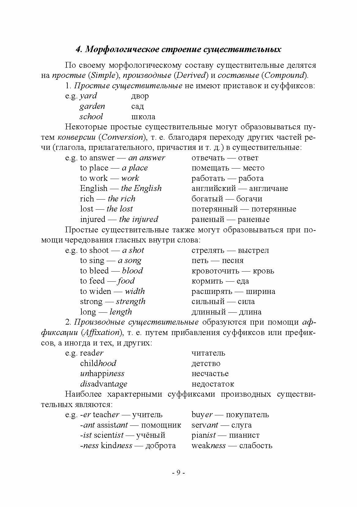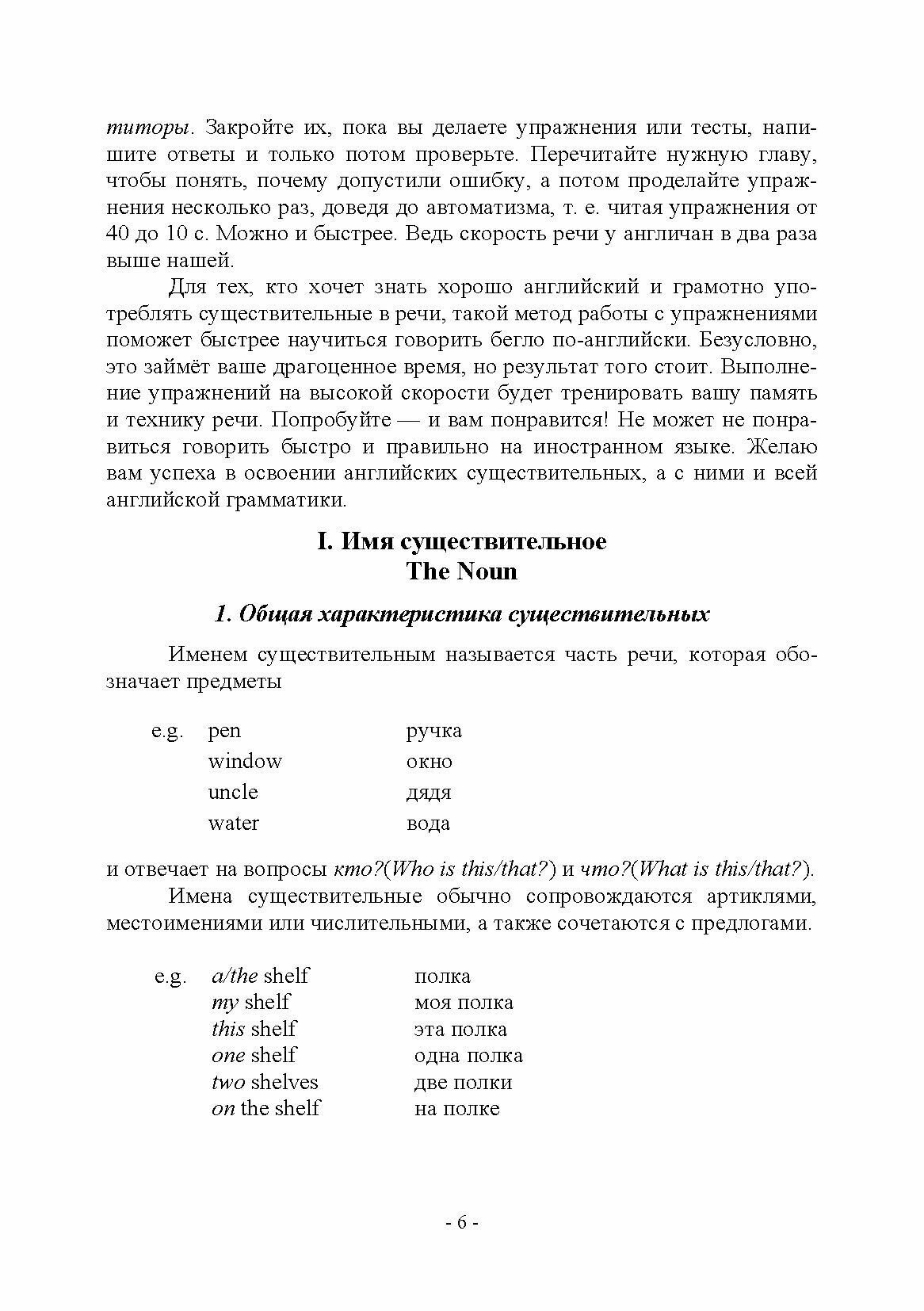 В данном пособии собран уникальный материал об английских существительных и прилагательных, который до сих пор был доступен лишь узкому кругу специалистов. Изложение материала дается по наиболее успешной дидактической модели для освоения иностранных языков: теория + практика (упражнения) + ключи. Эта модель позволяет студенту за минимально короткое время приобрести максимальное количество знаний. В свою очередь, после изучения учебное пособие может выполнять роль ниверсального справочника по всем аспектам английских существительных и прилагательных и служить читателю долгие годы.