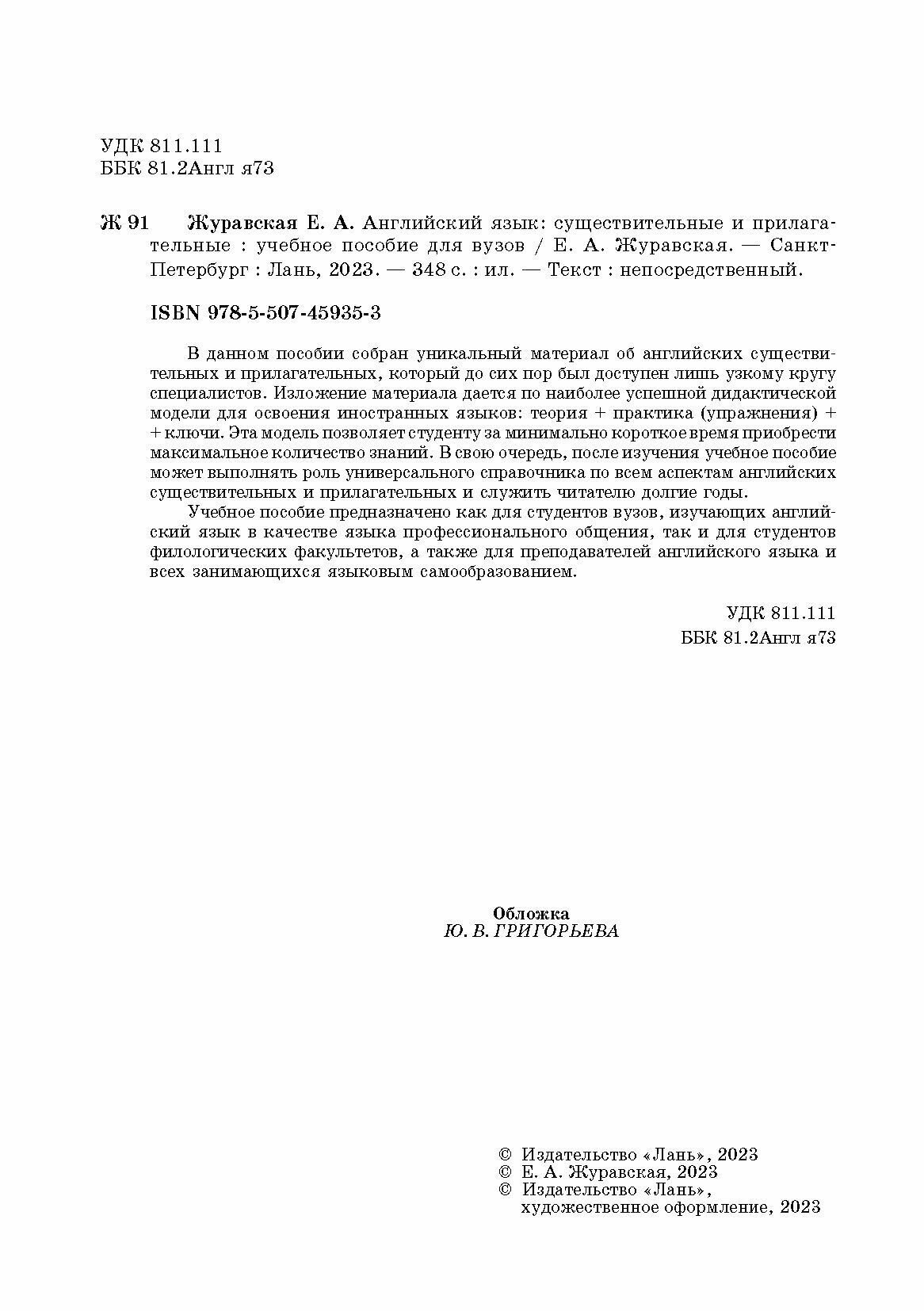 Английский язык. Существительные и прилагательные. Учебное пособие для вузов (Е. А. Журавская); Издательство ЛАНЬ, 2023