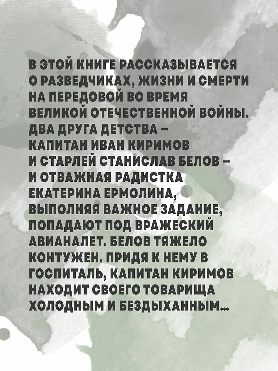 В этой книге рассказывается о разведчиках, жизни и смерти на передовой. Два друга детства - капитан Иван Киримов и старлей Станислав Белов - и отважная радистка Екатерина Ермолина, выполняя важное задание, попадают под вражеский авианалет. Белов тяжело контужен. Придя к нему в госпиталь, капитан Киримов находит своего товарища холодным и бездыханным… Как дальше сложится судьба разведчиков? Что еще уготовила им эта бесчеловечная война? Доживут ли они до дня Великой Победы?