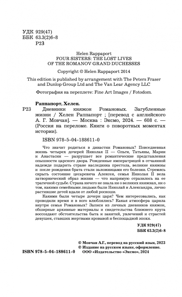 Дневники княжон Романовых. Загубленные жизни (Хелен Раппапорт); Эксмо, Редакция 1, 2025