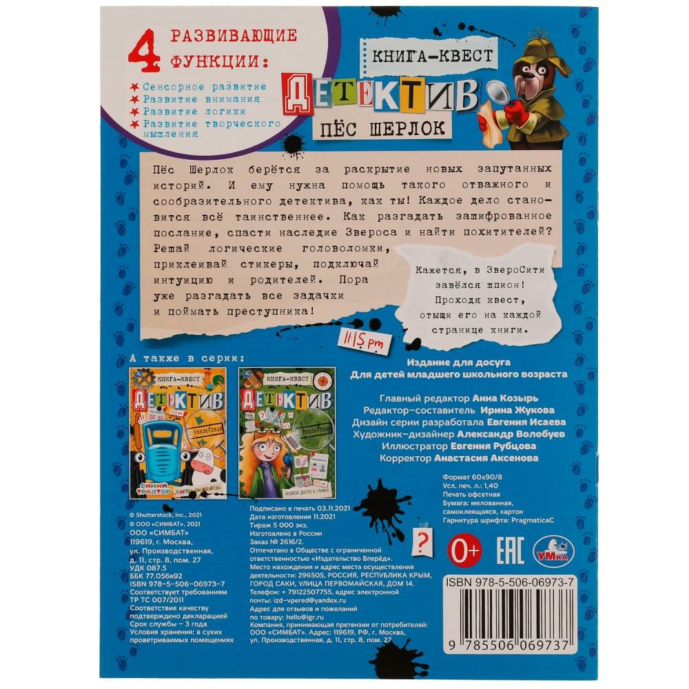 Книга-квест с наклейками. Детектив. Пес Шерлок (Жукова И.); Симбат, 2021