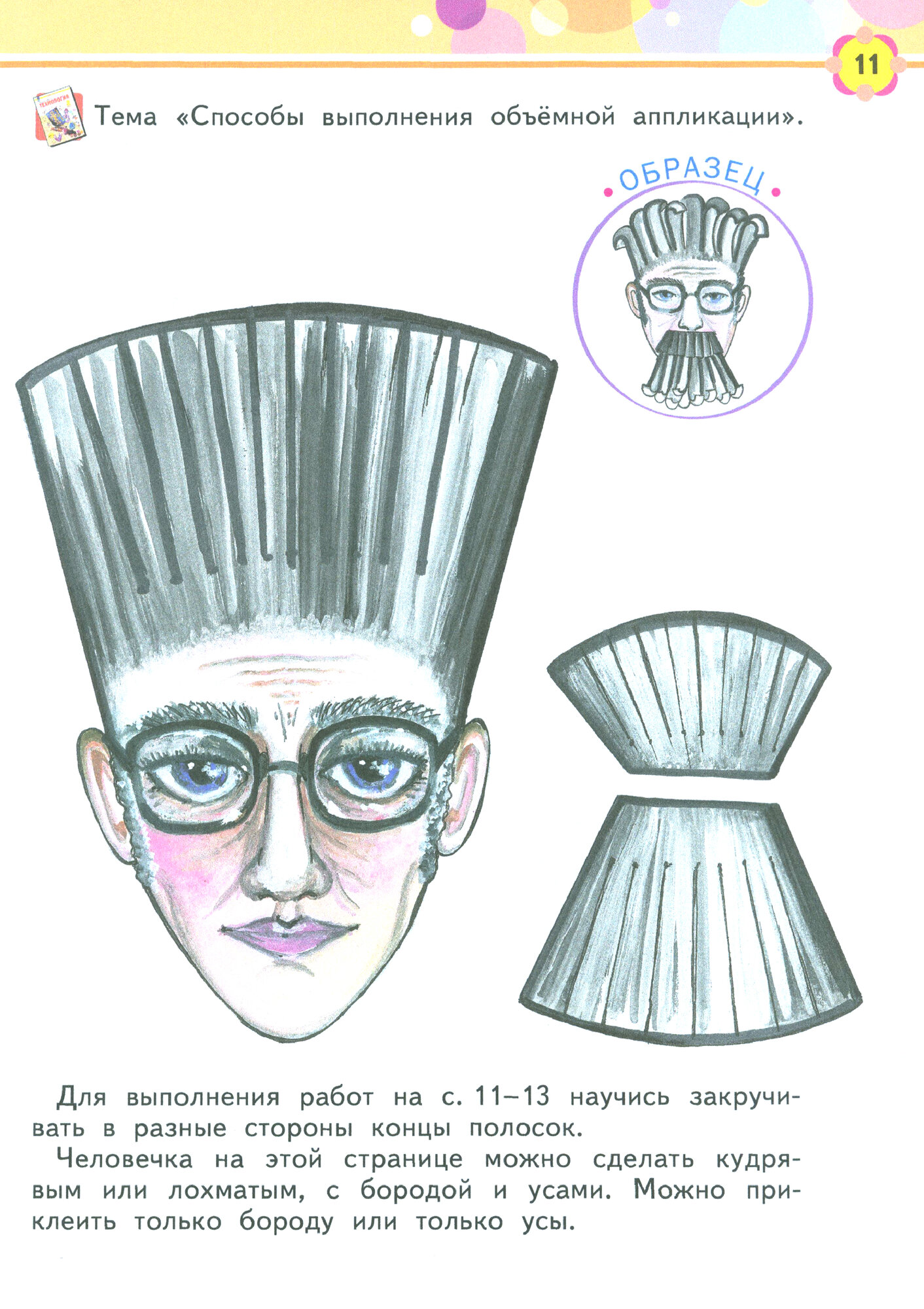 на некоторых даны красочные основы, которые использует ребёнок. В процессе работы с тетрадью все её страницы вырезаются и становятся отдельными картинками. В тетради приведены проверочные задания, дающие ребёнку возможность самостоятельно оценить свою работу. В конце тетради даны шаблоны, выкройки и детали к работам и темам учебного пособия.