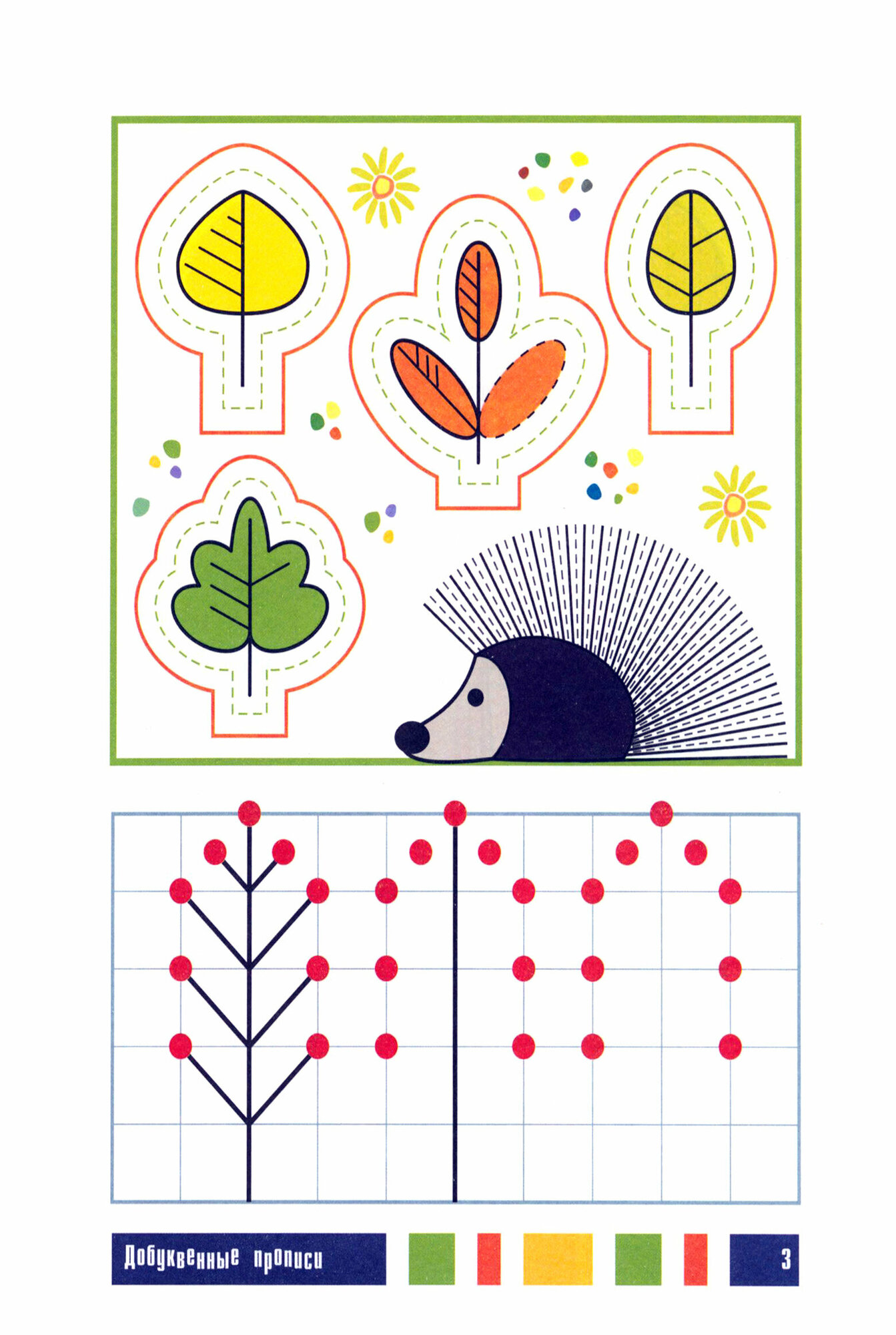 Пропись содержит цветные страницы с развивающими графическими заданиями: это элементы для обведения, дорисовывания, рисования и раскрашивания, способствующие развитию графических навыков, логического мышления, памяти, внимания, координации движений. Развивается и совершенствуется мелкая моторика руки ребенка, что является несомненным залогом будущей успешной учёбы.