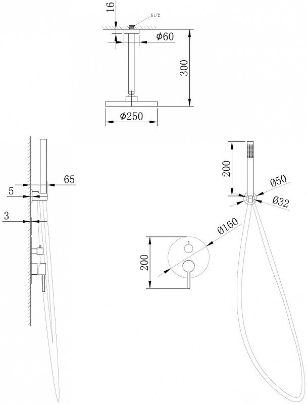 | Габариты верхнего душа | 250 |