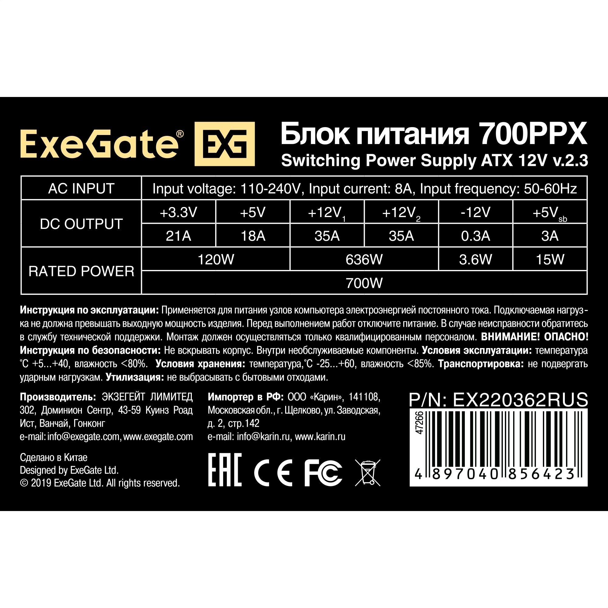 Блок питания ExeGate ATX-700PPX EX220362RUS-S 700W