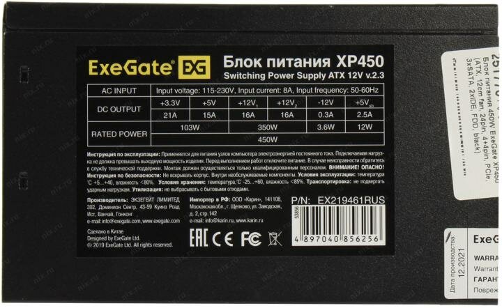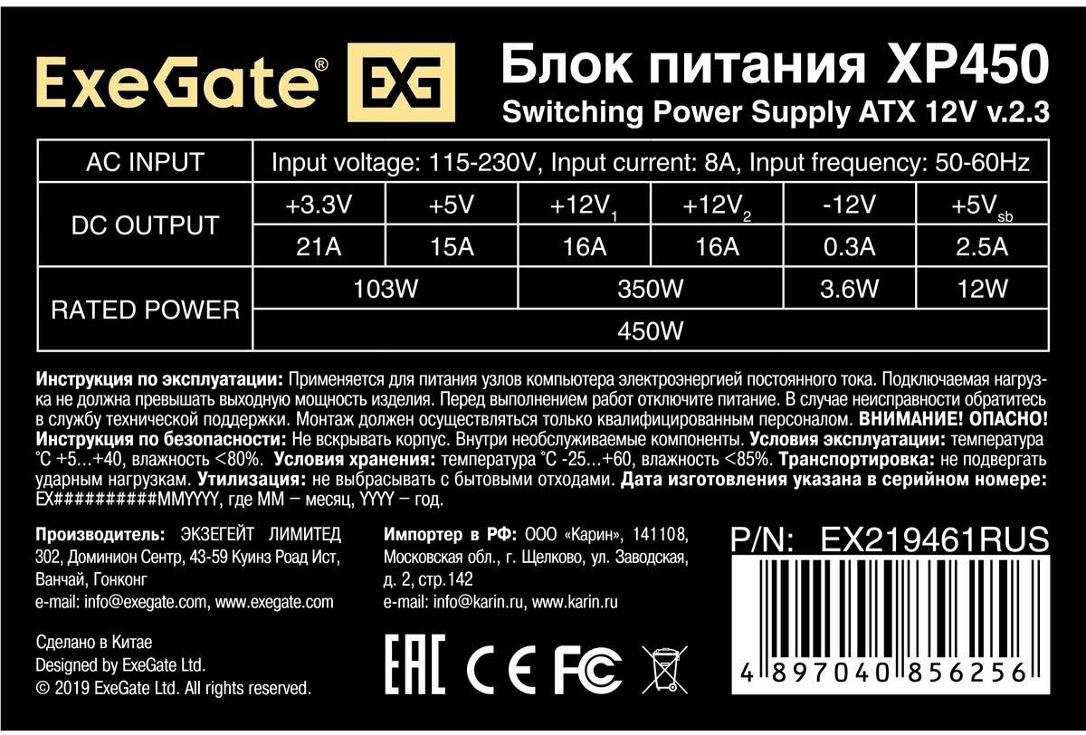 Блок питания ExeGate XP450 EX284695RUS 450W
