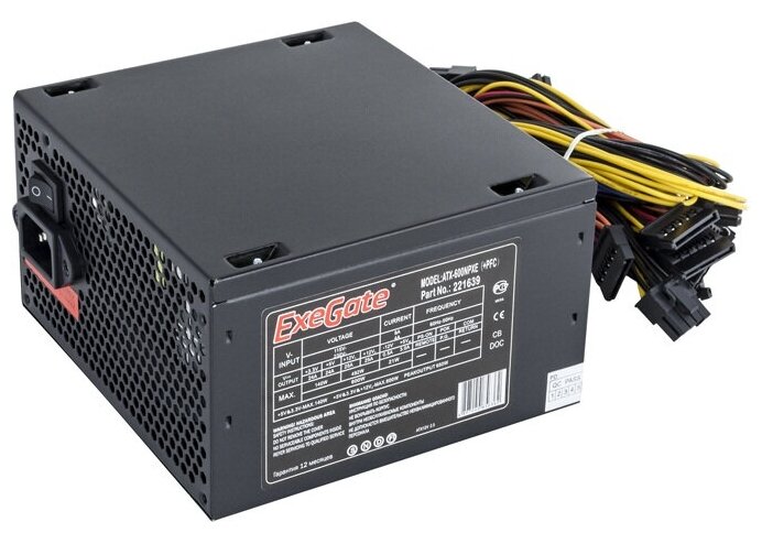 Блок питания 600W ExeGate 600NPXE (ATX, PPFC, PC, 12cm fan, 24pin, (4+4)pin, PCIe, 4xSATA, 3xIDE, FDD, black, кабель 220V в комплекте)