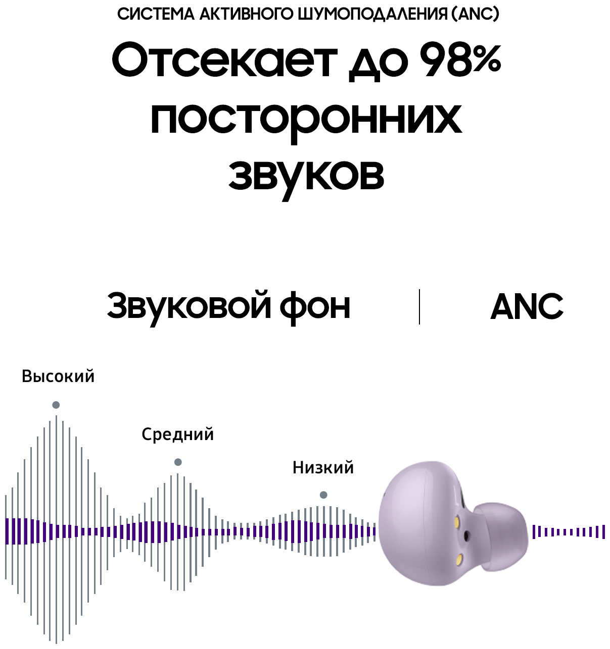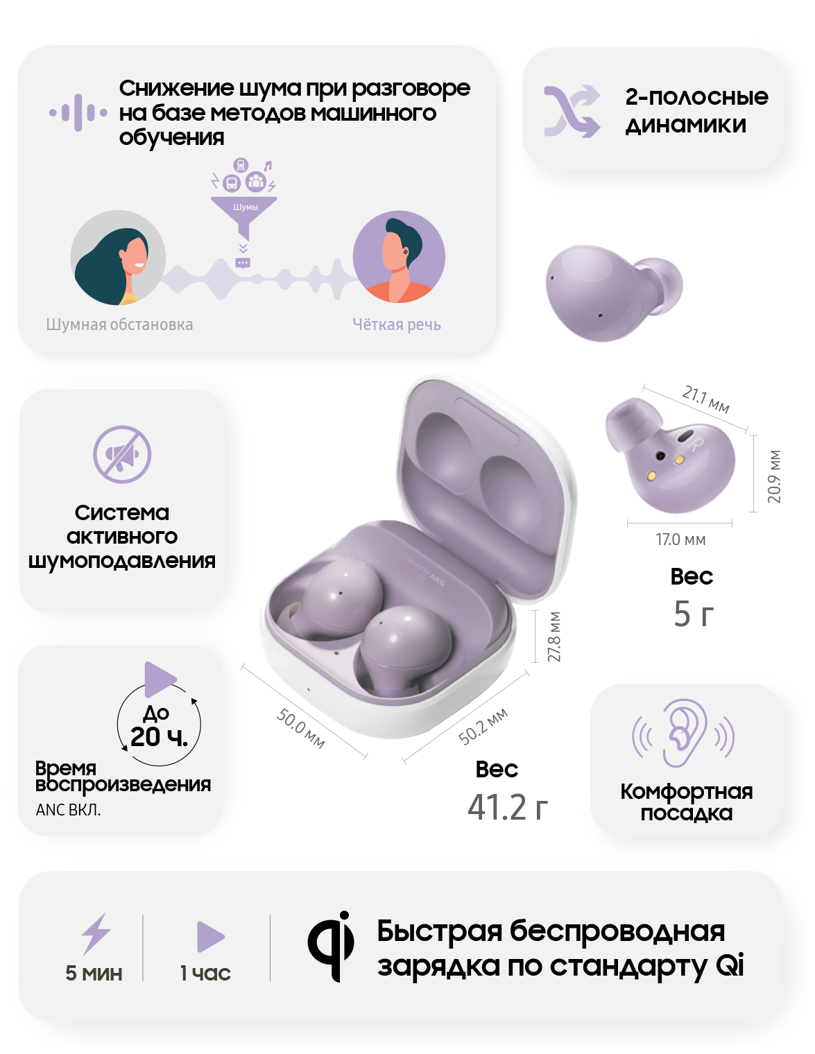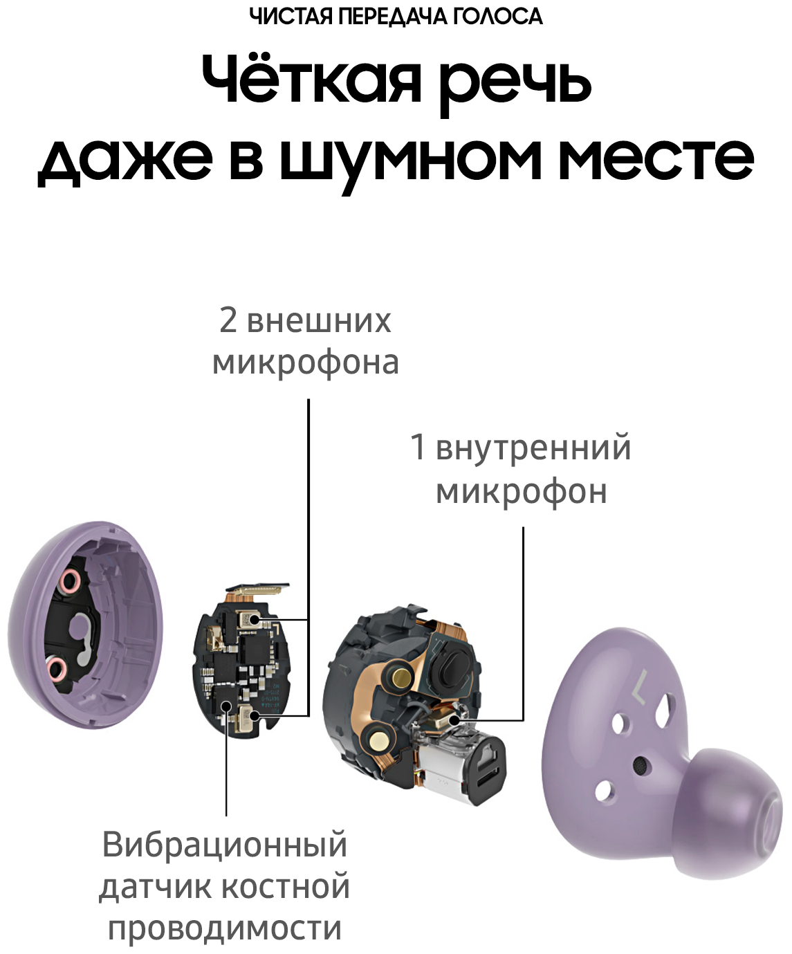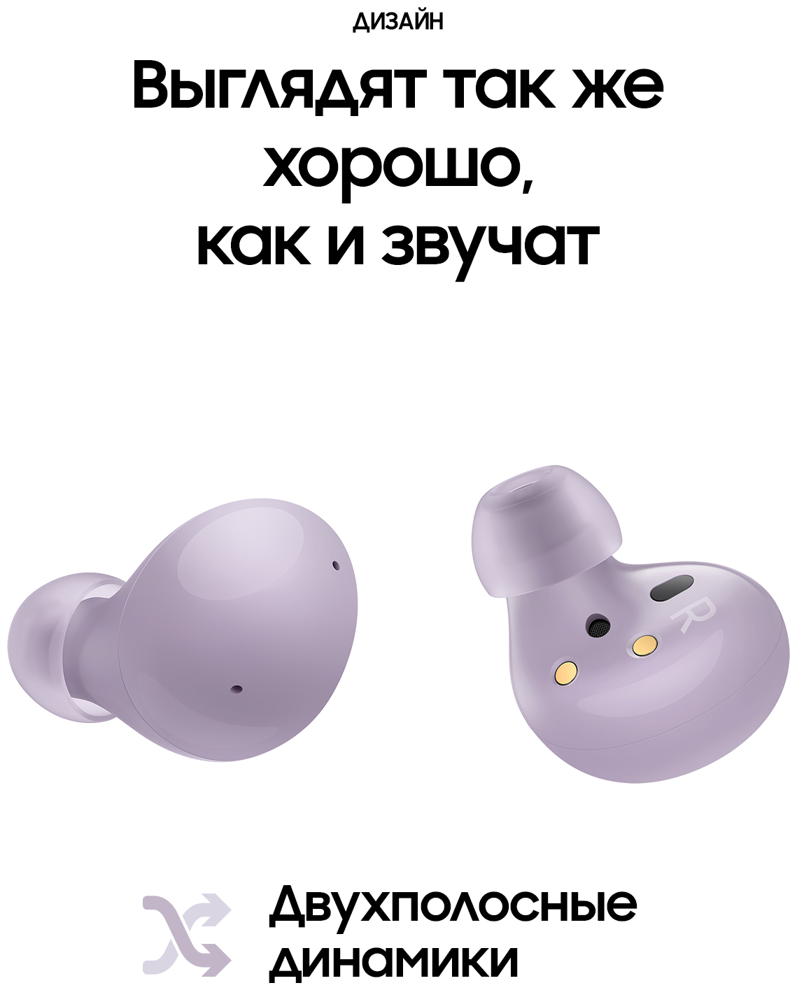 Наслаждайтесь мощными, глубокими басами и чистыми высокими частотами через двухполосные динамические излучатели. Samsung Galaxy Buds2 обеспечивает сбалансированное качество звука, которое обогащает каждый момент вашего аудиопутешествия. С Galaxy Buds2 любое качество звука соответствует вашему вкусу. Благодаря шести различным настройкам эквалайзера на выбор вы найдете свой собственный идеальный, яркий звук, который погрузит вас в процесс прослушивания.