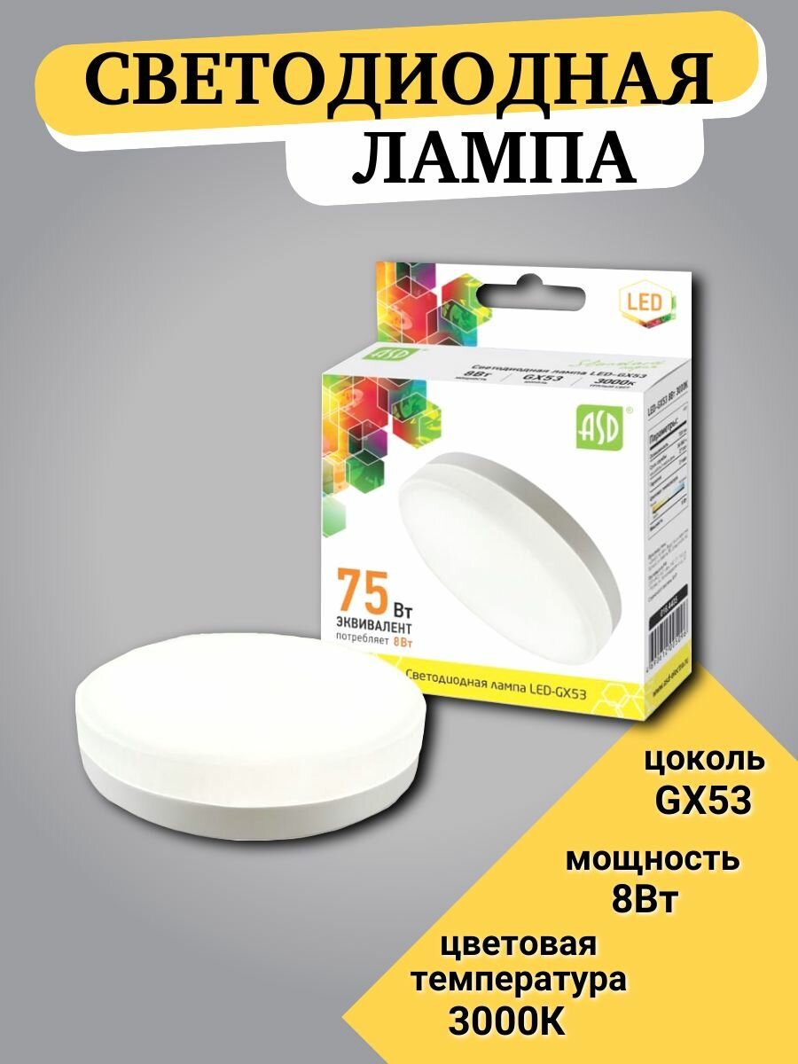 Лампа светодиодная Asd Led-gx53-standard 8Вт 230В 3000К