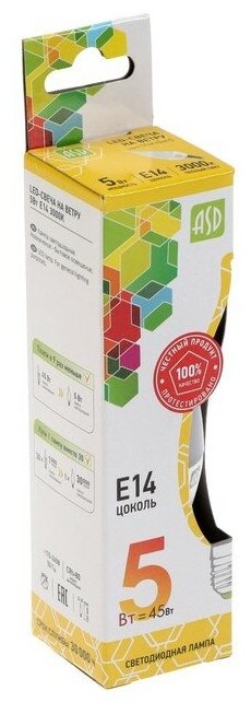 - Светодиодная лампа ASD Е27 5W 3000K С37 свеча
