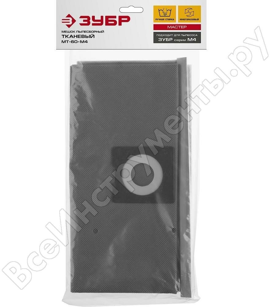 Мешок тканевый ЗУБР предназначен для сбора пыли в режиме сухой уборки.Преимущества Многоразовый мешок: можно использовать несколько раз, экономя деньги на покупке новых мешков Большой объём: 60 литров достаточно для сбора мусора в течение длительного времени без замены мешка Подходит для пылесосов модификации М4: идеально совместим с моделью пылесоса, обеспечивая эффективную работу Удобная молния: позволяет легко очистить мешок от собранного мусора и пыли Высокое качество материалов: мешки изготовлены из прочных и долговечных материалов, что гарантирует долгий срок службы