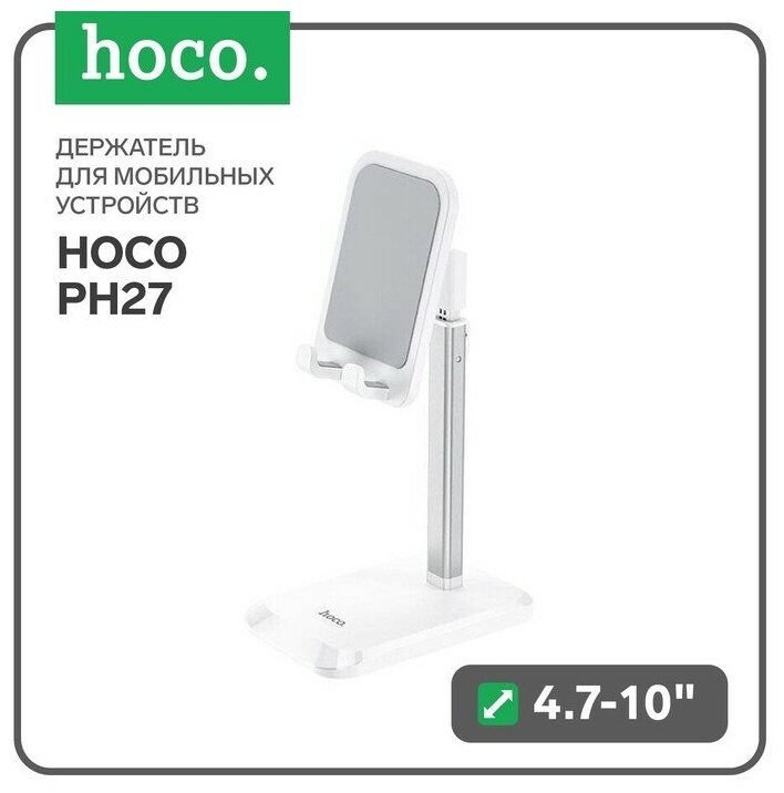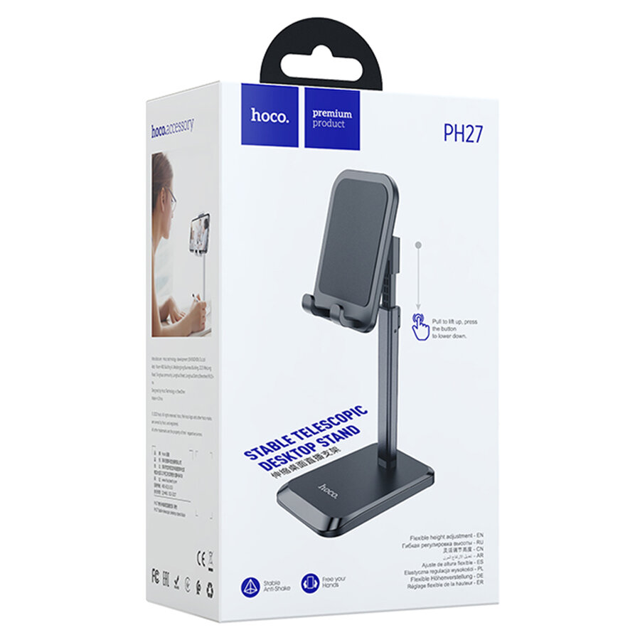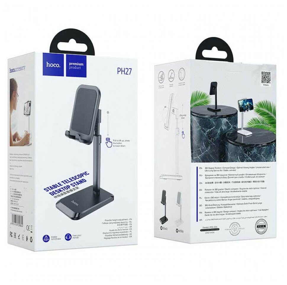 Держатель настольный HOCO PH27 надежно удержит телефон или планшет, освободив ваши руки. Телескопическая регулировка вверх-вниз, изменение угла наклона до 45 градусов позволит легко подобрать нужную высоту и угол наклона. Подставка для телефона HOCO PH27 удобна и проста в использовании, позволяя одной рукой надежно размещать свой гаджет. Освободите руки и наслаждайтесь отдыхом, доверьте свой телефон, планшет настольному держателю HOCO PH27. (Подходит для телефонов и планшетов от 4.7 до 10 дюймов)