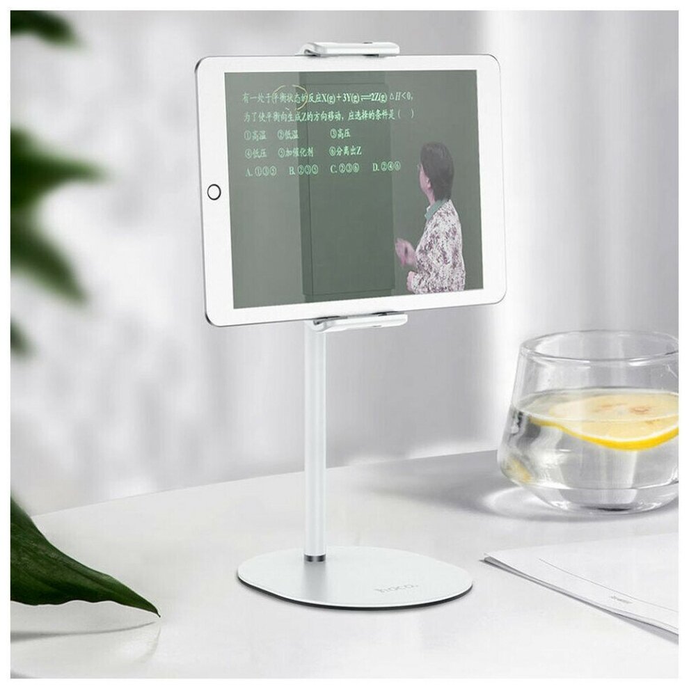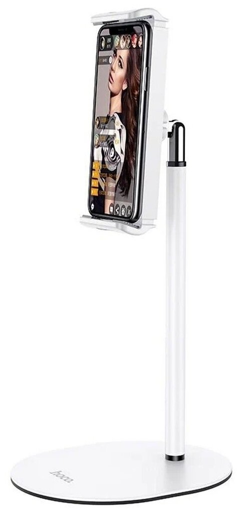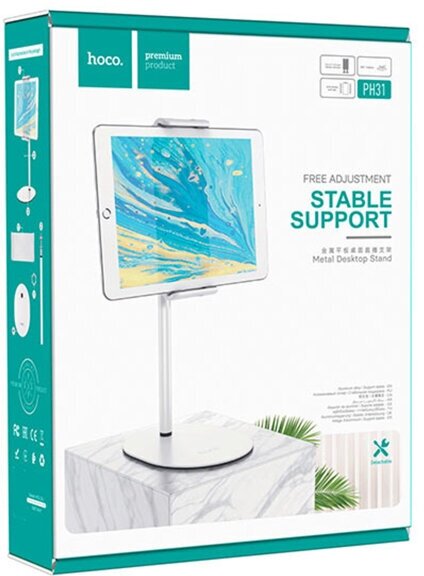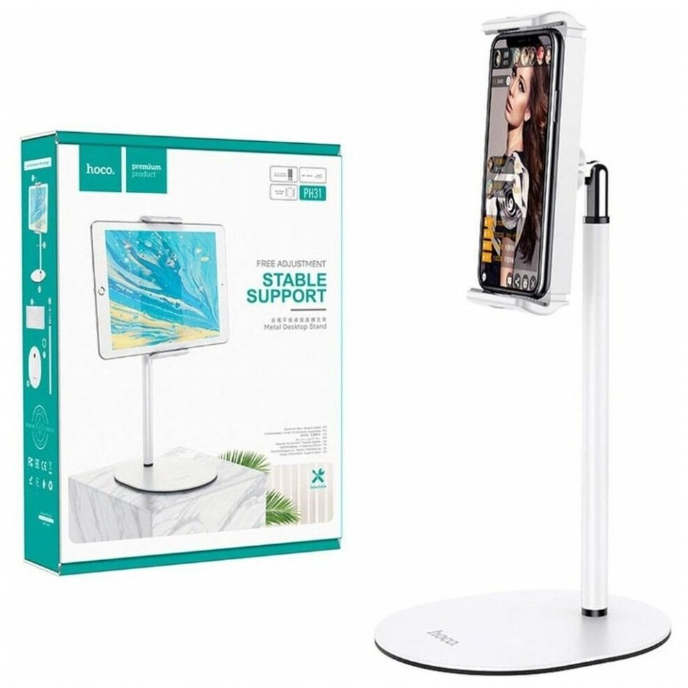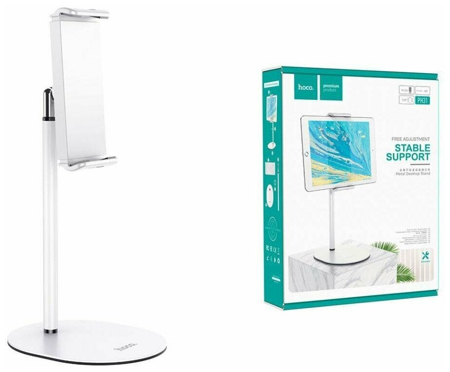 Держатель настольный hoco PH31/ для смартфонов, iPhone/ белый/ подарок жене, мужу, брату, сестре Настольный держатель Hoco PH31 является универсальным решением для вас. Держатель позволит общаться по видеосвязи со своими друзьями и родственникам, обучаться онлайн или работать с планшетом и телефоном не напрягая свои руки и шейные отделы позвоночника. Преимущества настольного держателя Hoco PH31: Регулирование возможно на 360 градусов - таким образом вы сможете настроить наклон вашего гаджета так, как будет удобно вам. Стабильное нескользящее основание надежно держится на любой ровной поверхности, не повреждая его. Удерживает не только телефоны с диагональю экрана от 4,7 дюймов, но и планшеты до 10 дюймов. Изготовлен из прочных материалов премиум-качества. Характеристики Размер товара, мм 140 × 170 × 290 мм Материал ABS, углеродистая сталь и силикон Функции и возможности Назначение: для онлайн учебы, для офиса, для стримов и др. Поверхность: текстурирование + оксидирование Цвет белый Производитель hoco. Вес товара, г 490 г Совместимость устройства с диагональю экрана 4.7-10 дюймов Особенность Гибкая штанга