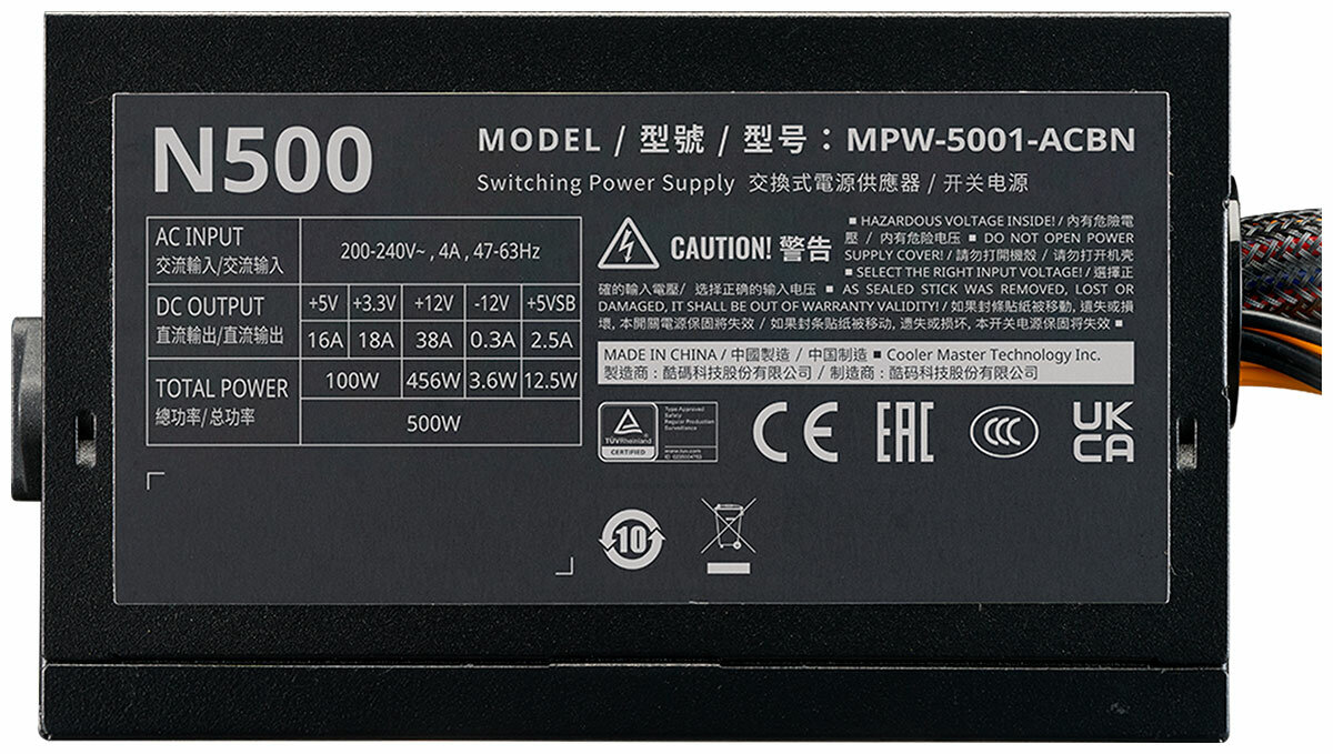 Блок питания ATX Cooler Master 500W APFC 120mm fan EU Cable ELITE NEX 230V