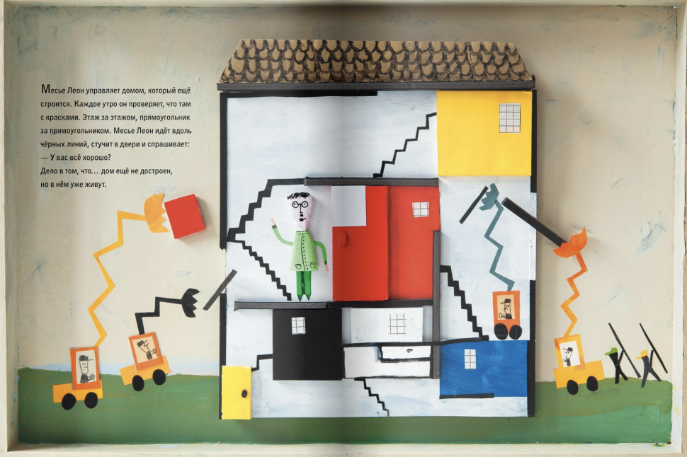 На создание этой истории автора и художника вдохновила картина Пита Мондриана «Композиция с большой красной плоскостью, жёлтым, чёрным, серым и синим».