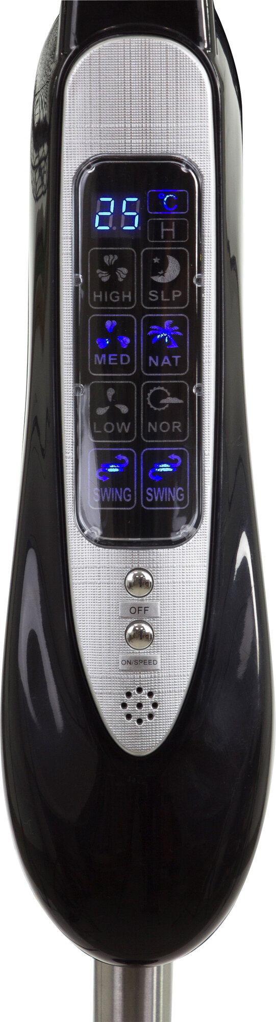 Простой в управлении вентилятор позволяет быстро охладить помещение. Конструкция обладает функцией поворота. Вентилятор имеет три режима работы. LCD дисплей. Пульт ДУ. Таймер от 1 до 7,5 часов. Лучевая решетка (120 прутьев). Измерение комнатной температуры. Режим "Natural" (имитация бриза), режим "Sleep", режим "Normal". Регулировка наклона, функция поворота. Круглая устойчивая подставка.