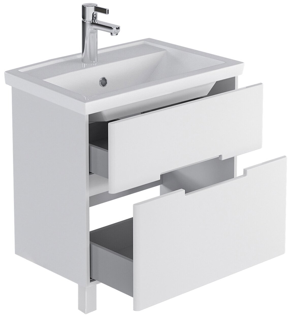 | Состав комплектации | Крепление к стене, фурнитура, паспорт, Тумба, ножки 4 шт. (2 хромированные, 2 белые) |