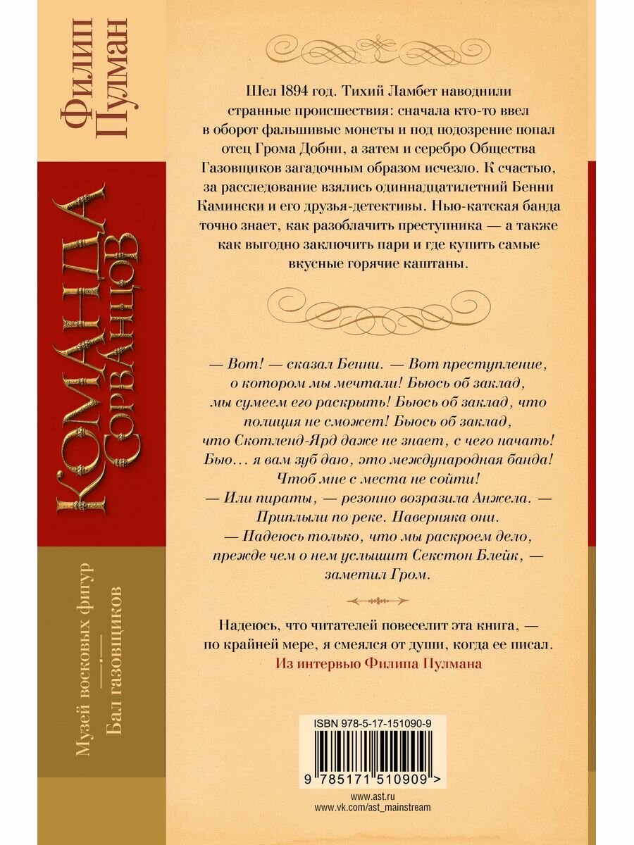 Окунитесь в мир детского детектива с книгой «Команда сорванцов. Музей восковых фигур. Бал газовщиков» от неподражаемого Филипа Пулмана, создателя незабываемых историй о Лире Белакве и Салли Локхарт. Вас ждут две веселые повести, каждая из которых невероятно остроумна, наполнена захватывающими сюжетами и незабываемыми персонажами.