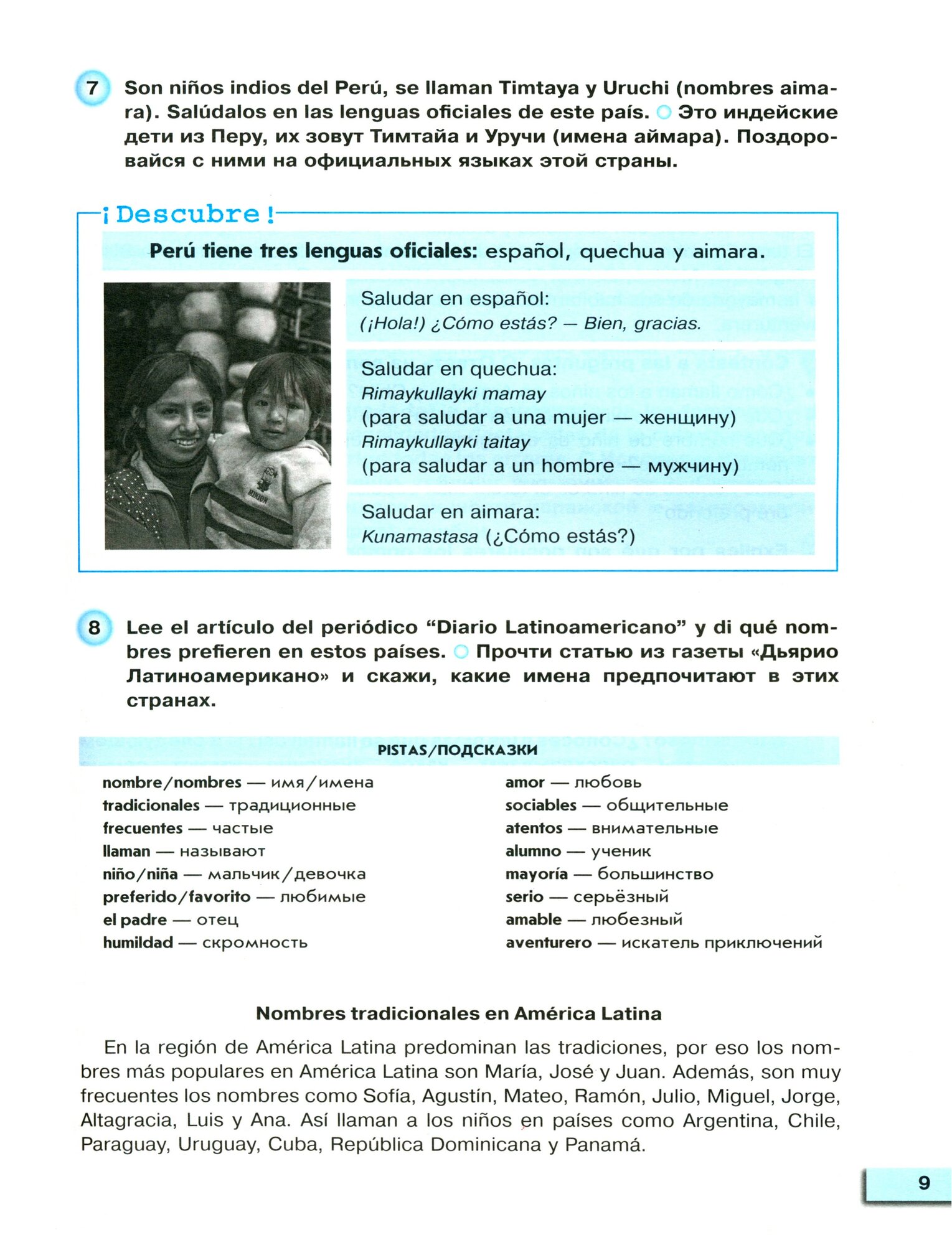 В книге для чтения используется страноведческая информация из аутентичных источников, обогащающая социальный опыт школьников: сведения об Испании и странах Латинской Америки, их культуре, исторических и современных реалиях, общественных деятелях.