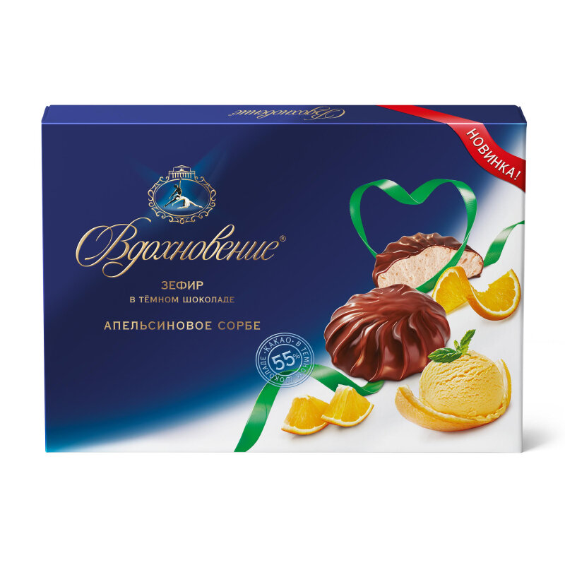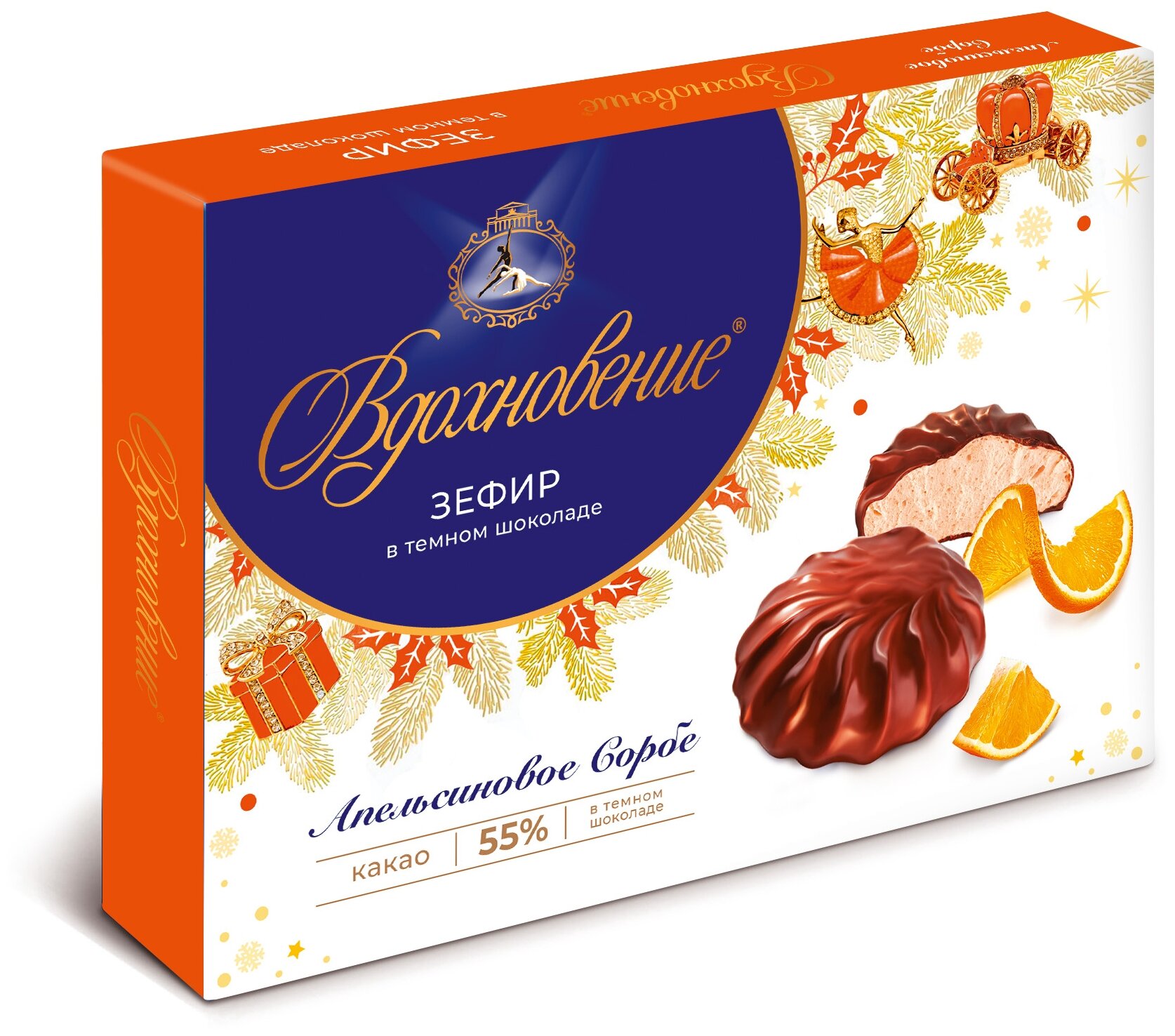 Зефир Вдохновение в темном шоколаде Апельсиновое сорбе 245г Воронежская КФ