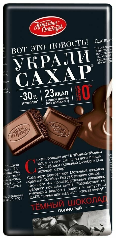Шоколад Красный Октябрь Украли сахар Темный пористый 75г Объединенные кондитеры
