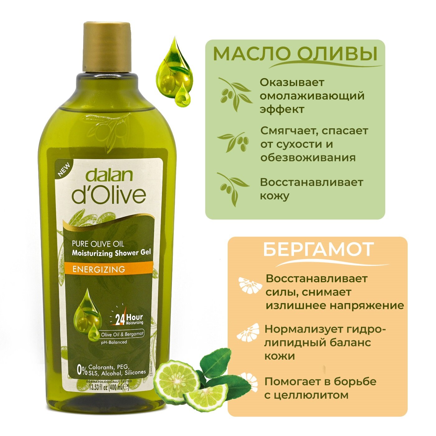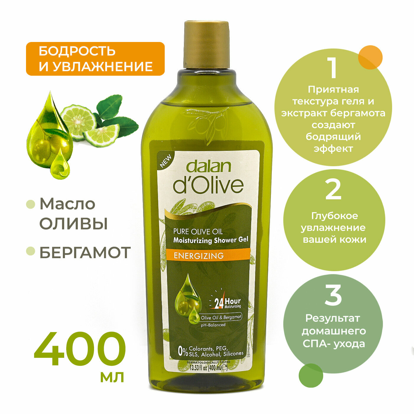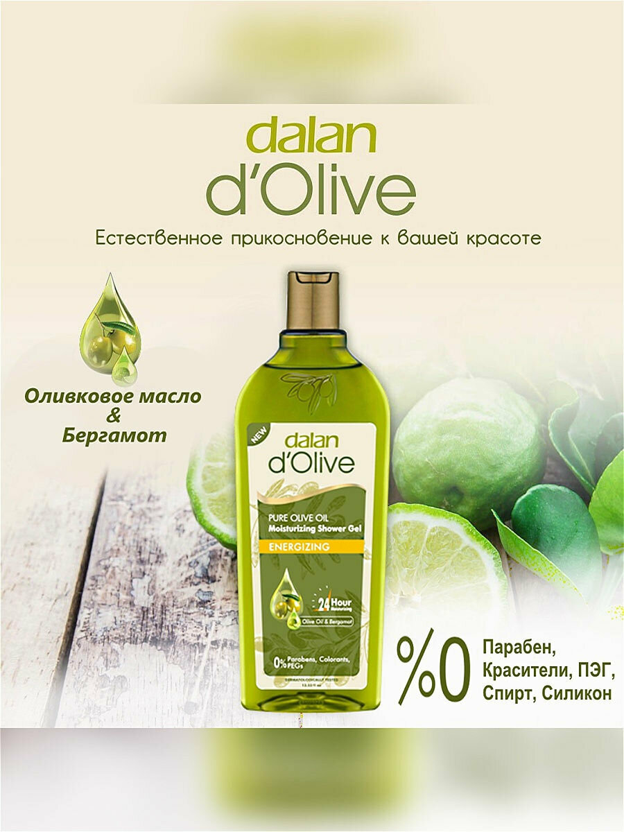 Dalan D'Olive Energizing - Заряд энергии для вашей кожи! Энергичный аромат геля для душа с оливковым маслом и бергамотом от Dalan D'Olive оживляет и вдохновляет. Гель для душа нежно очищает и увлажняет кожу на 24 часа.