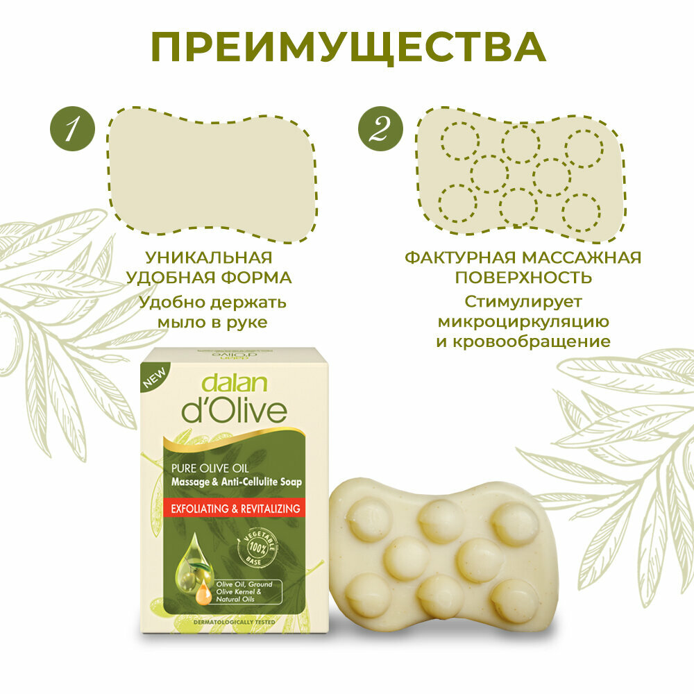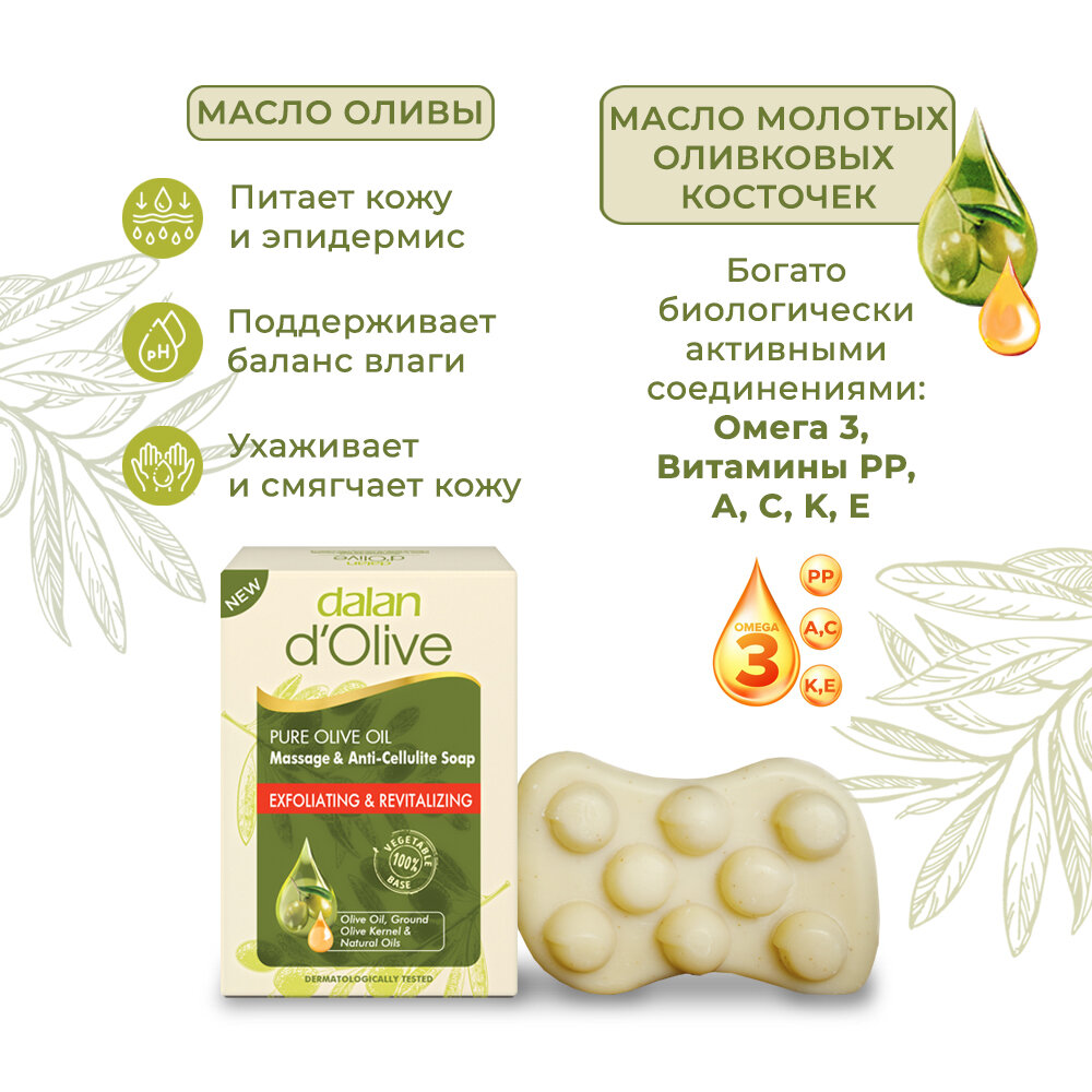 Мыло натуральное Dalan D Olive Массажное антицеллюлитное Упругость и эластичность кожи 150г Dalan Kimya End. A.S.