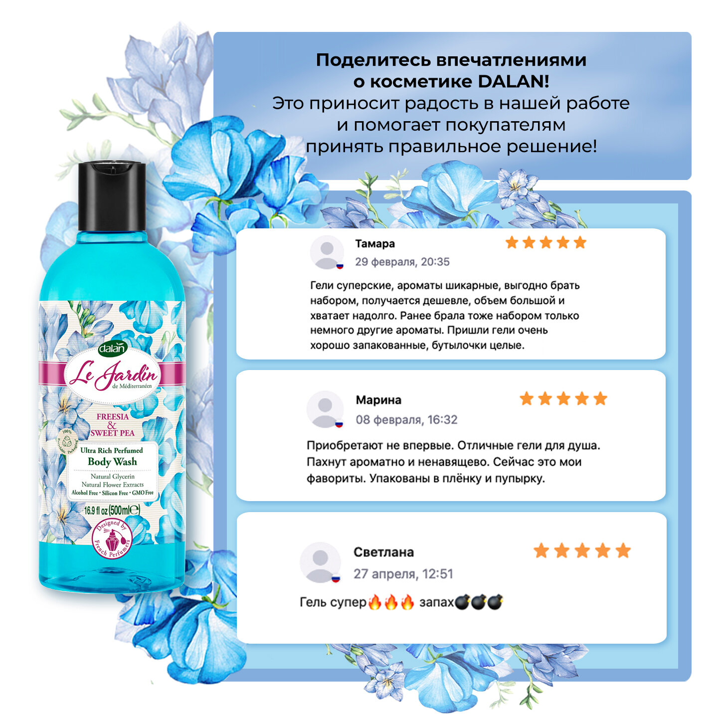 Гель для душа Dalan Le Jardin Парфюмированный аромат Фрезии и душистого горошка 500мл Dalan Kimya End. A.S.