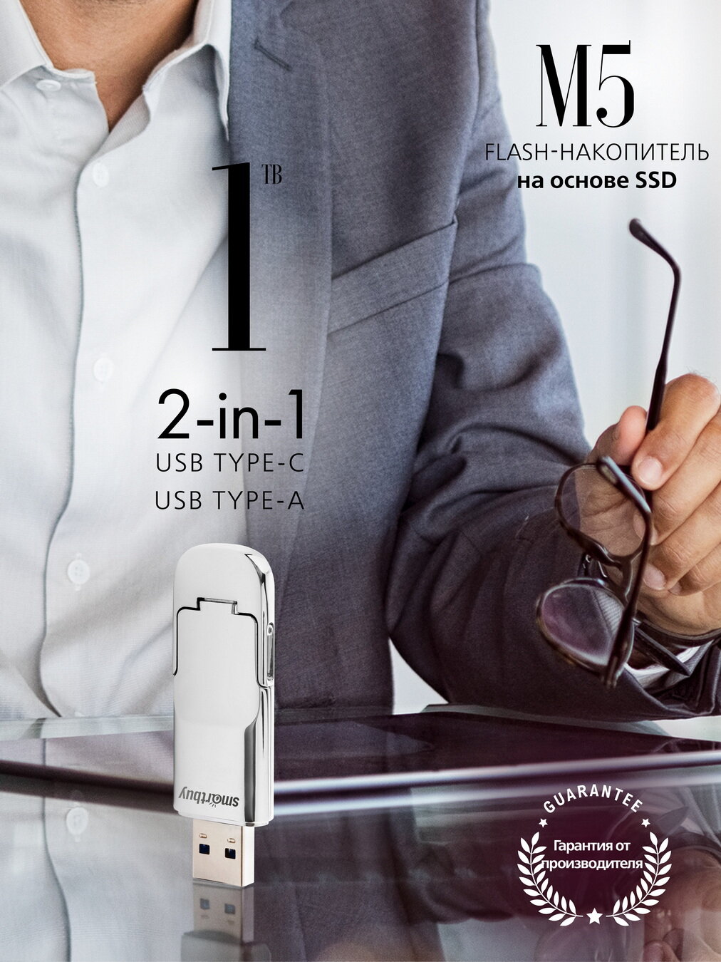 Бескомпромиссные скорость и качество. Сверхскоростной металлический флэш-накопитель на основе SSD с интерфейсом USB 3.2 Gen.2 с двойным интерфейсом (USB-A + USB-C) в коробке, кожаный чехол с логотипом в комплекте.