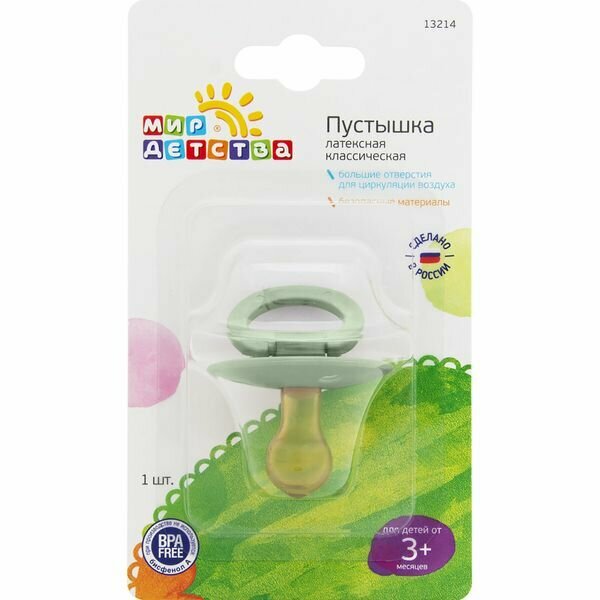 Соска-пустышка латексная Мир Детства классическая с 3 мес. 1 шт