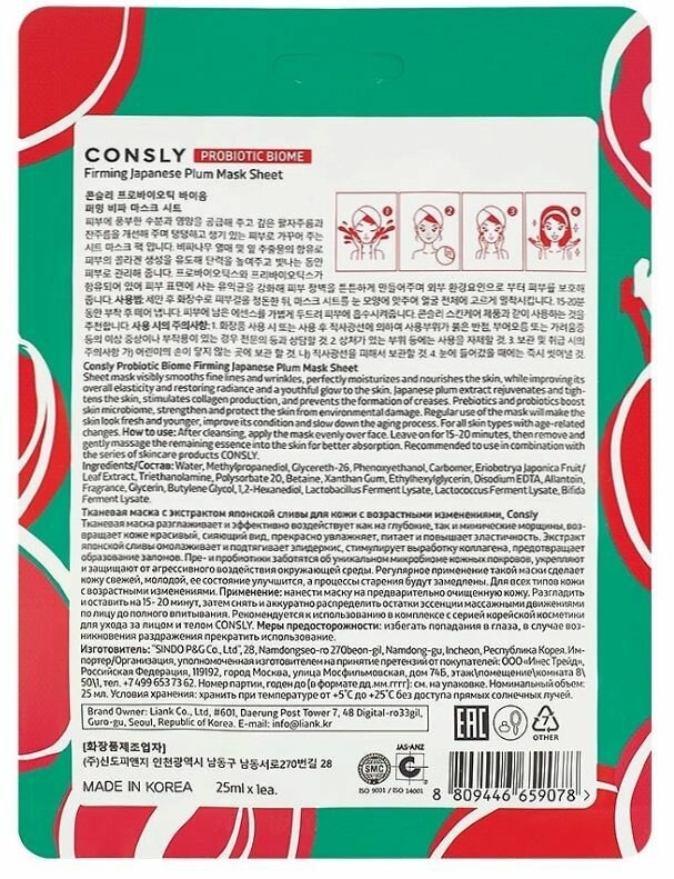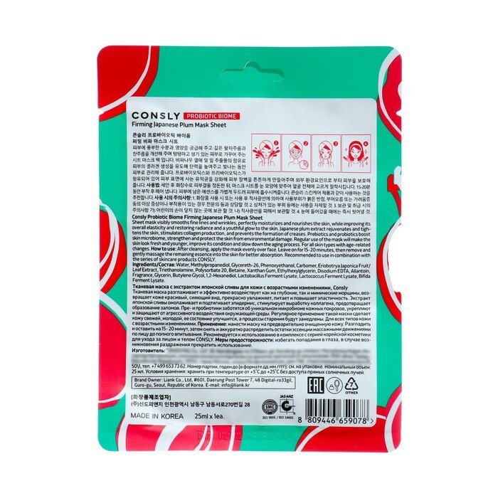 Маска тканевая для лица CONSLY Probiotic Biome с экстрактом японской сливы 25 мл