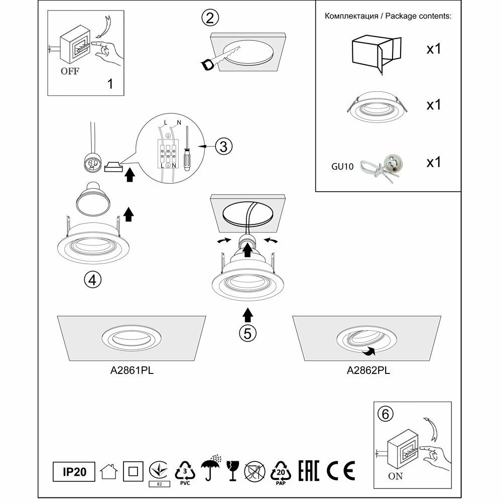 | Патрон в комплекте | GU10 |