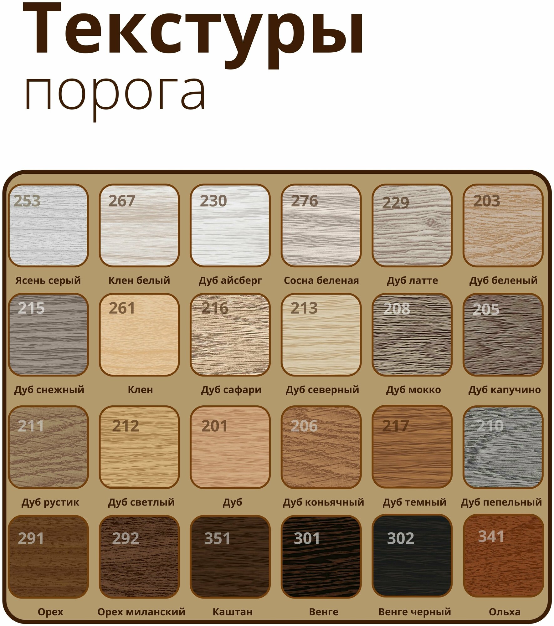 **Стык** или порог одноуровневый предназначен для эстетичного оформления швов между соединительными швами напольного покрытия: ламината, паркета, ковролина, линолеума и т. д. Единственное условие — полотна должны быть расположены на одном уровне. Порог изготовлен из прочного пластика, декорирован под фактуру древесины. Крепится к основанию при помощи шурупов (идет в комплекте).