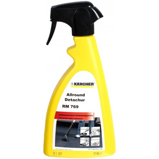 **Универсальный пятновыводитель Karcher RM 769** удаляет следы дегтя, чернил, масел, обувного крема и других трудновыводимых веществ с поверхностей, устойчивых к воздействию растворителей. Состав действует быстро, помогает справиться с застарелыми загрязнениями, возвращает текстилю, мебели и другим предметам обстановки свежий ухоженный вид. Применяется в быту, автосервисах, коммунальном хозяйстве, торговле, гостиничном и ресторанном бизнесе.