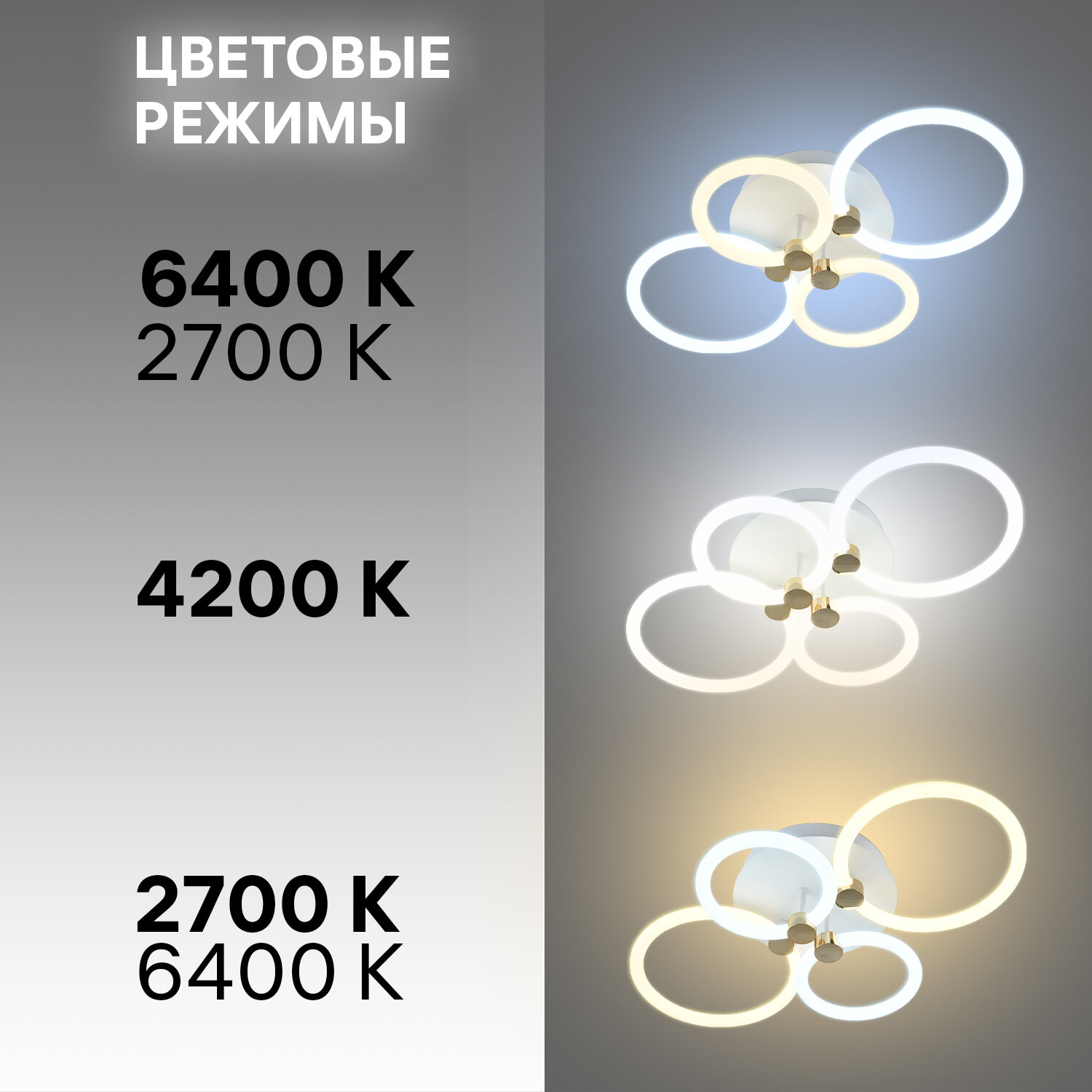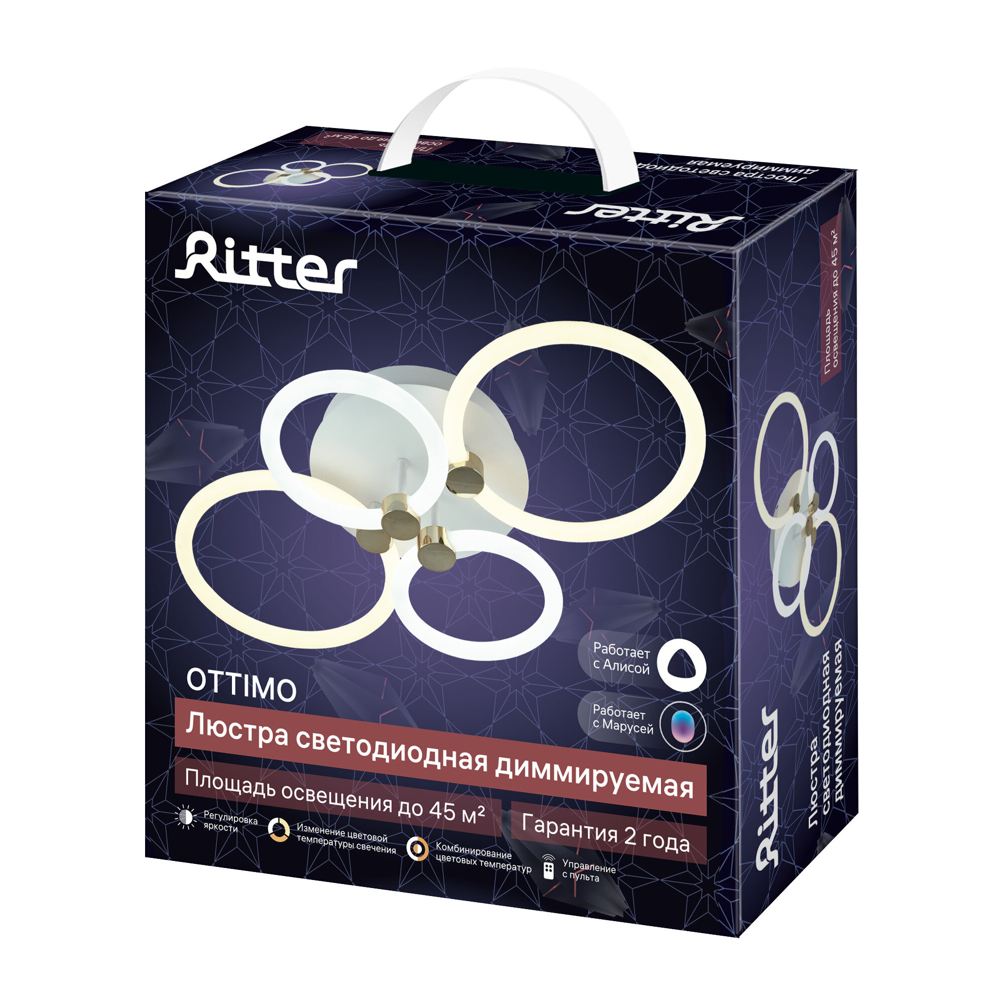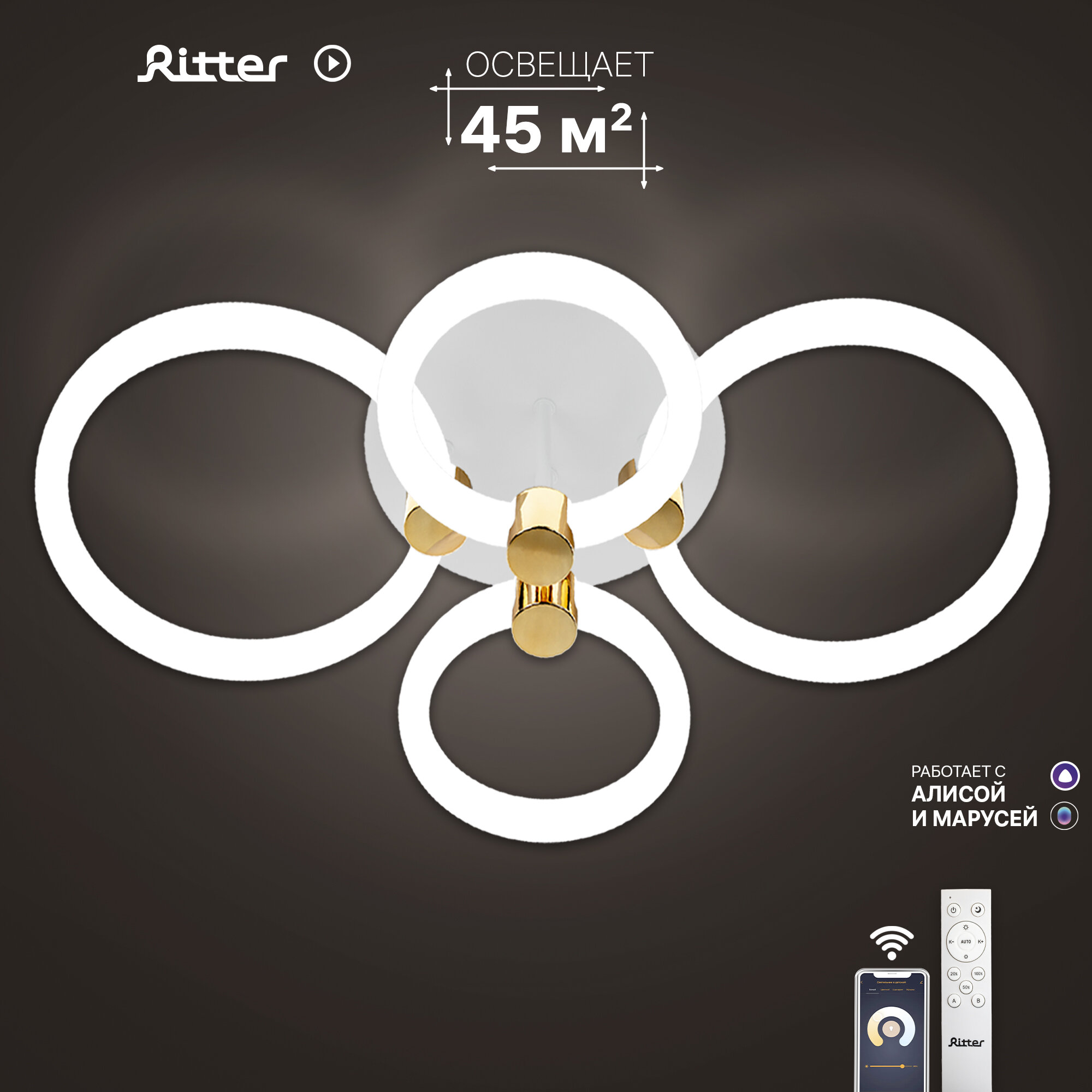 Люстра потолочная светодиодная диммируемая Ritter Ottimo 51612 9 с Алисой и пультом 100Вт 45м² 2700K-6400К цвет белый/золотой