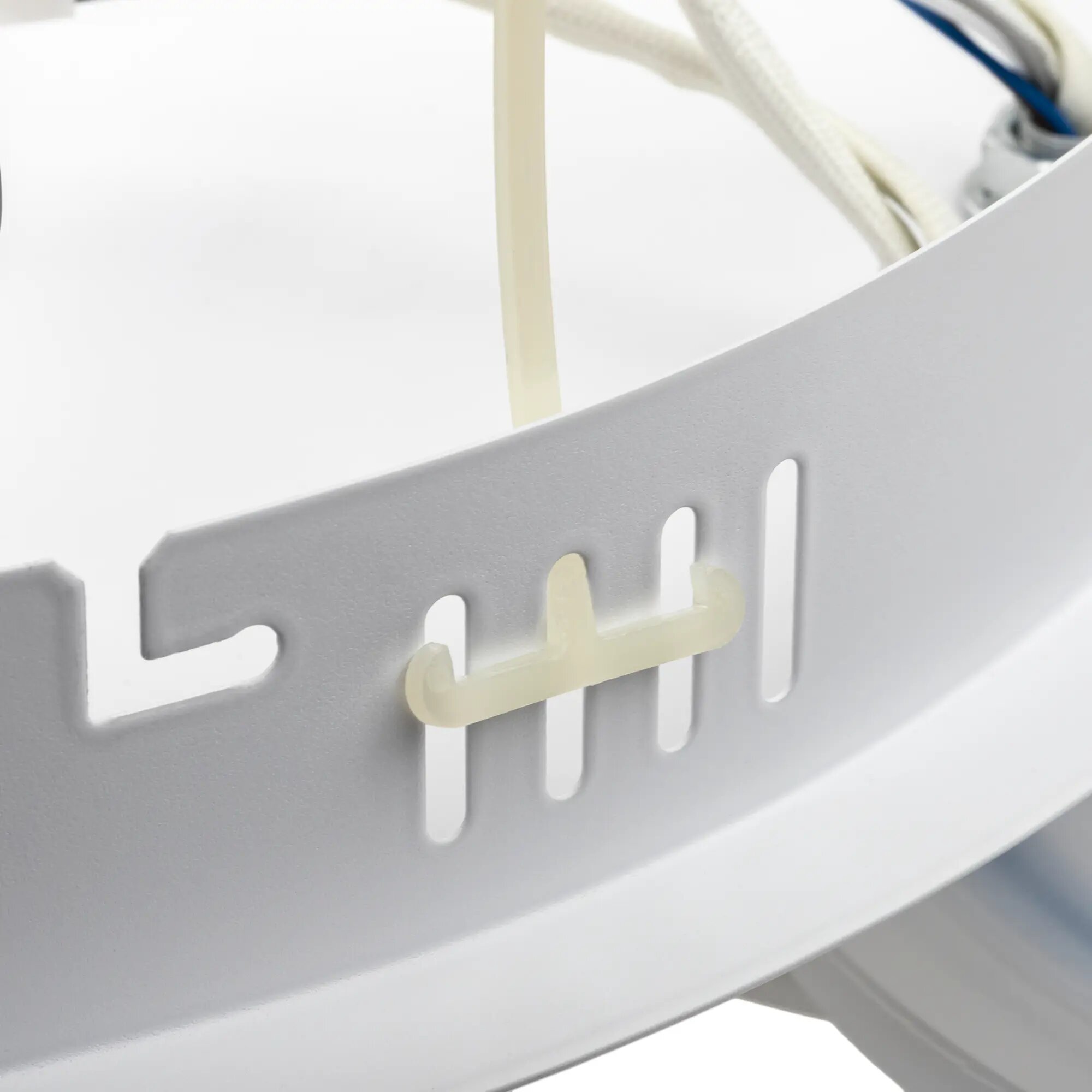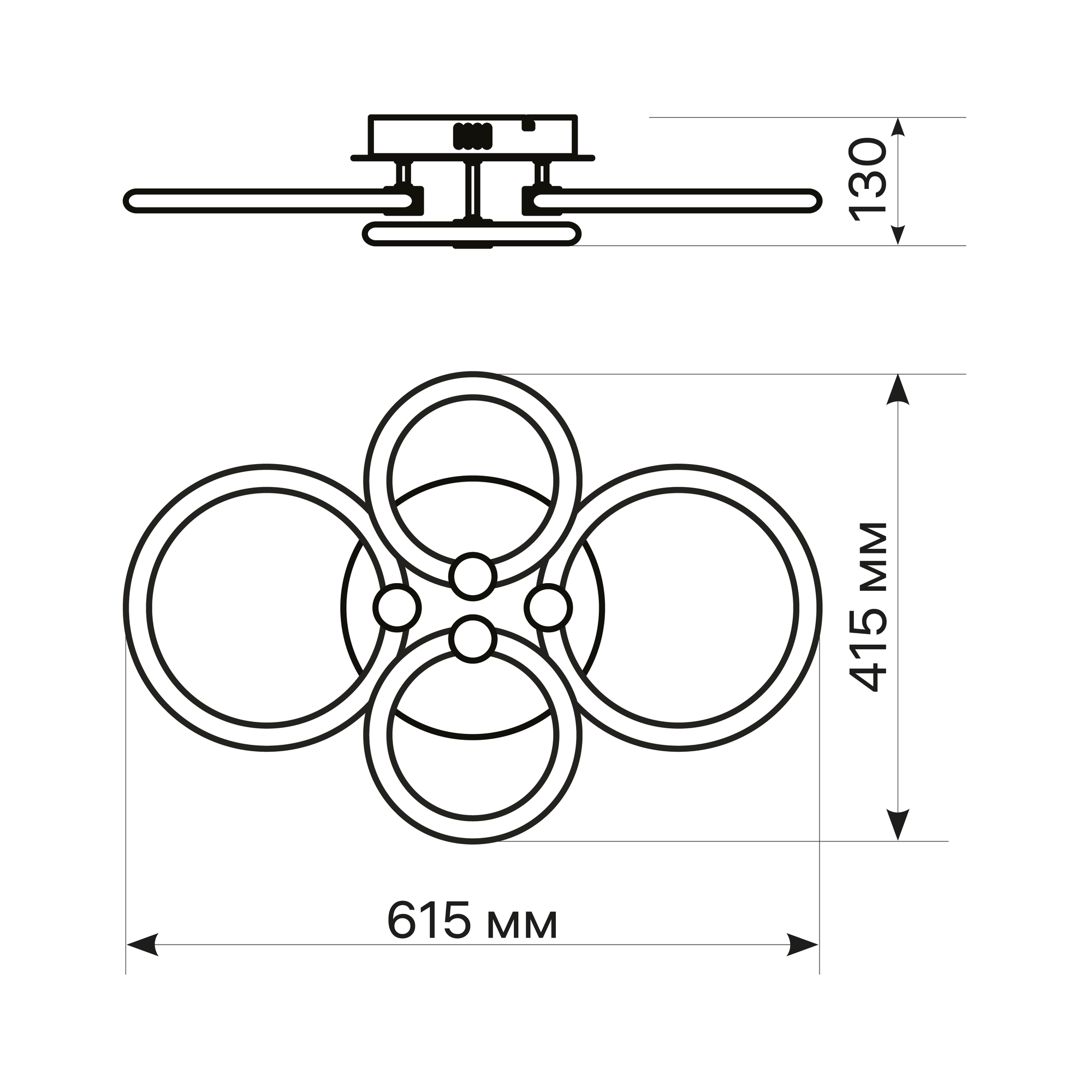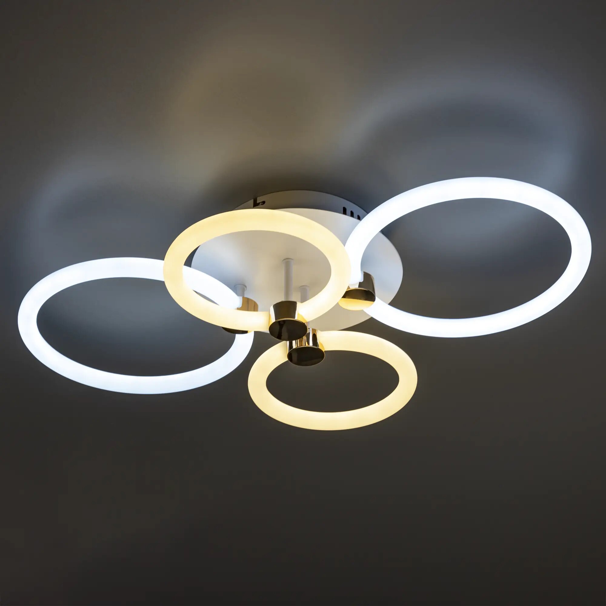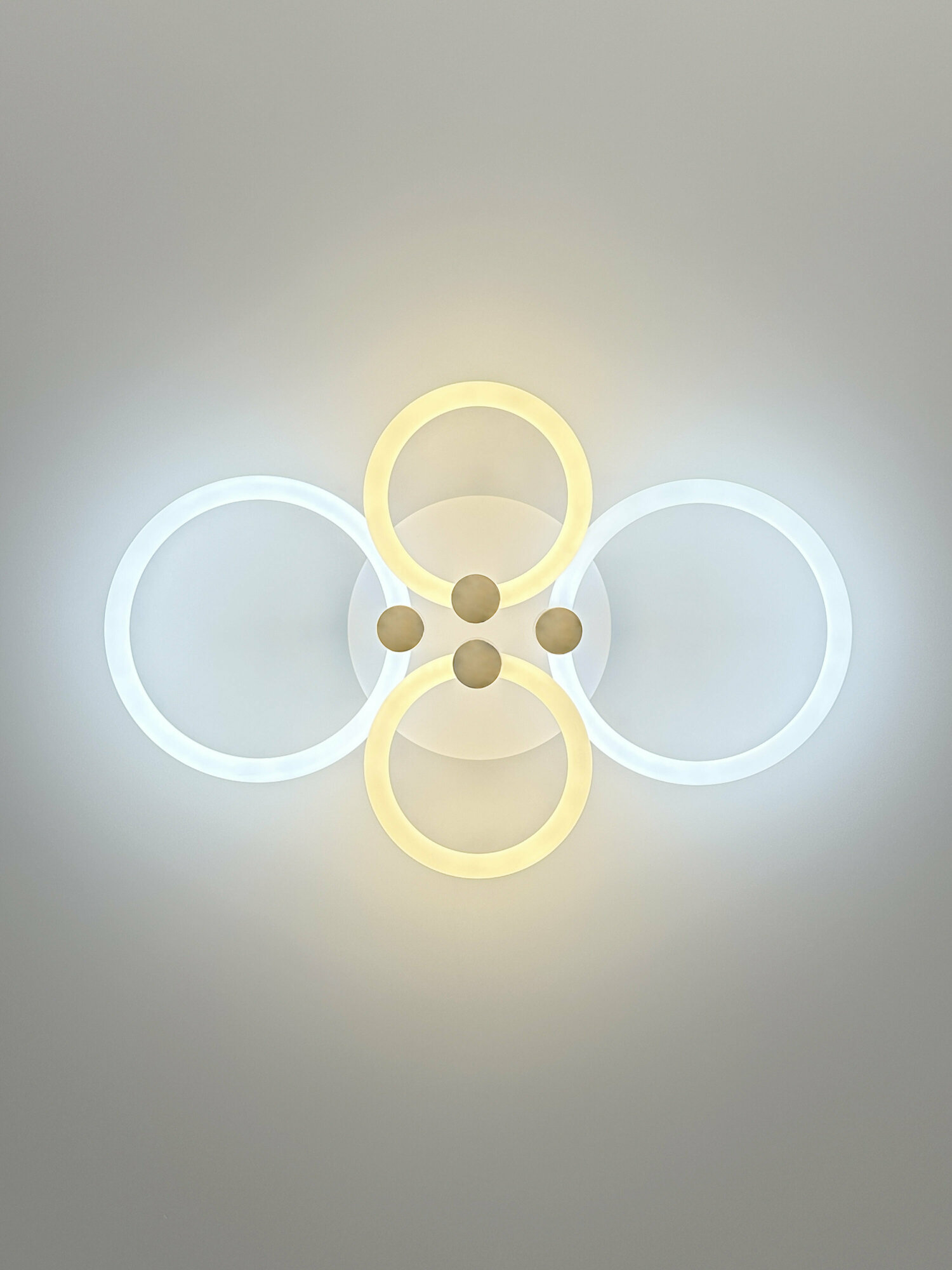 **Люстра потолочная светодиодная диммируемая Ritter Ottimo 51612 9** может крепиться к низкому и натяжному потолкам при помощи планки. Выполнена в виде светящихся колец. Для управления используются три способа: настенный выключатель, пульт ДУ или голосовой помощник Алиса.