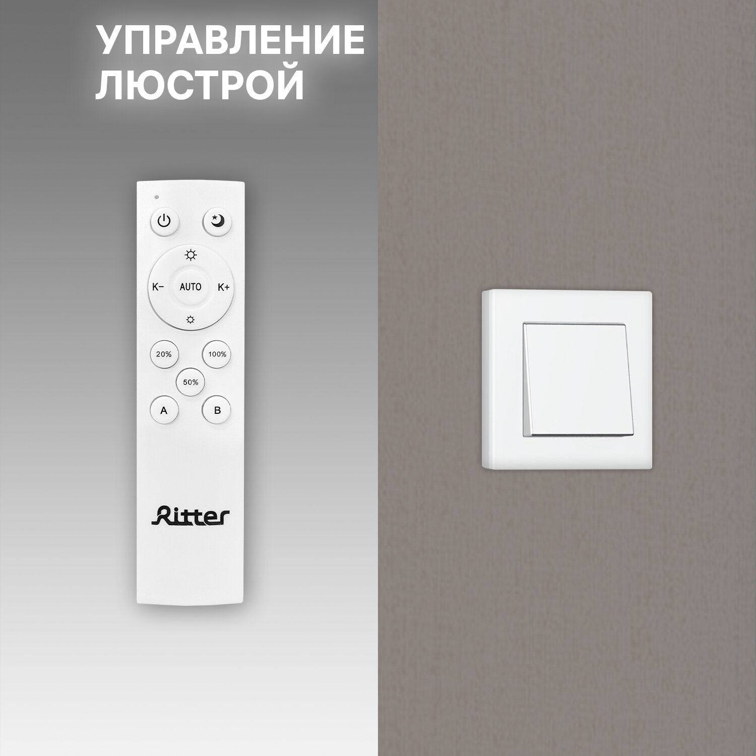 **Люстра потолочная светодиодная диммируемая Ritter Ottimo 51611 2** может крепиться к низкому и натяжному потолкам при помощи планки. Выполнена в виде светящихся колец. Для управления используются три способа: настенный выключатель, пульт ДУ или голосовой помощник Алиса.