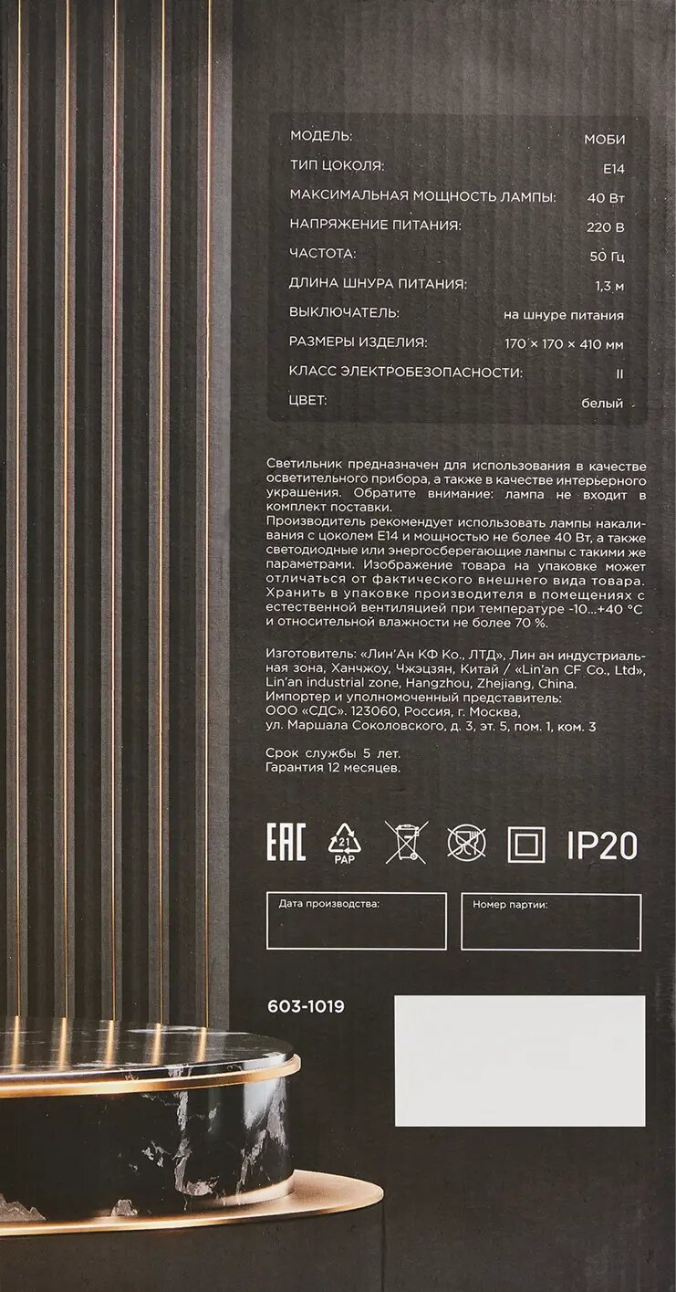 | Тип продукта | Настольная лампа прикроватная |
