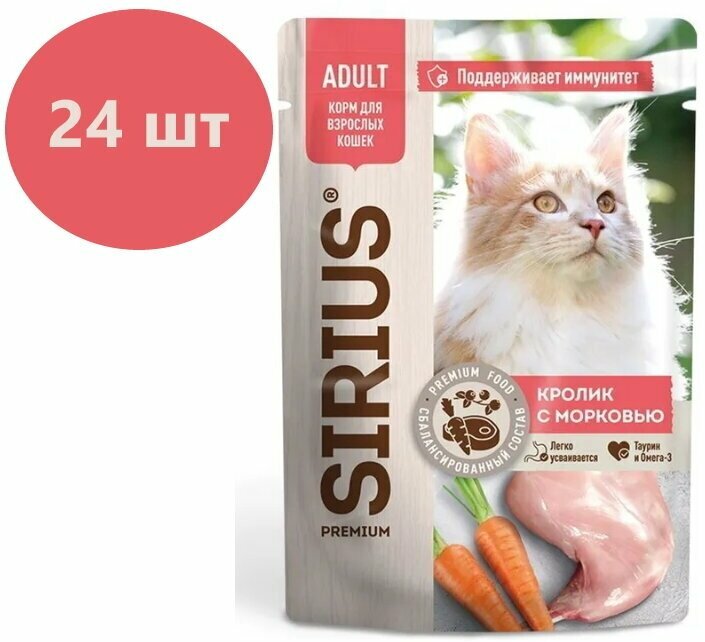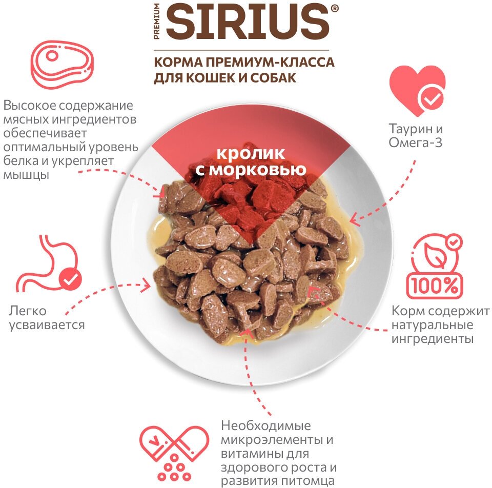 Sirius Adult пауч для кошек (кусочки в соусе) (Кролик с морковью 85 г.)