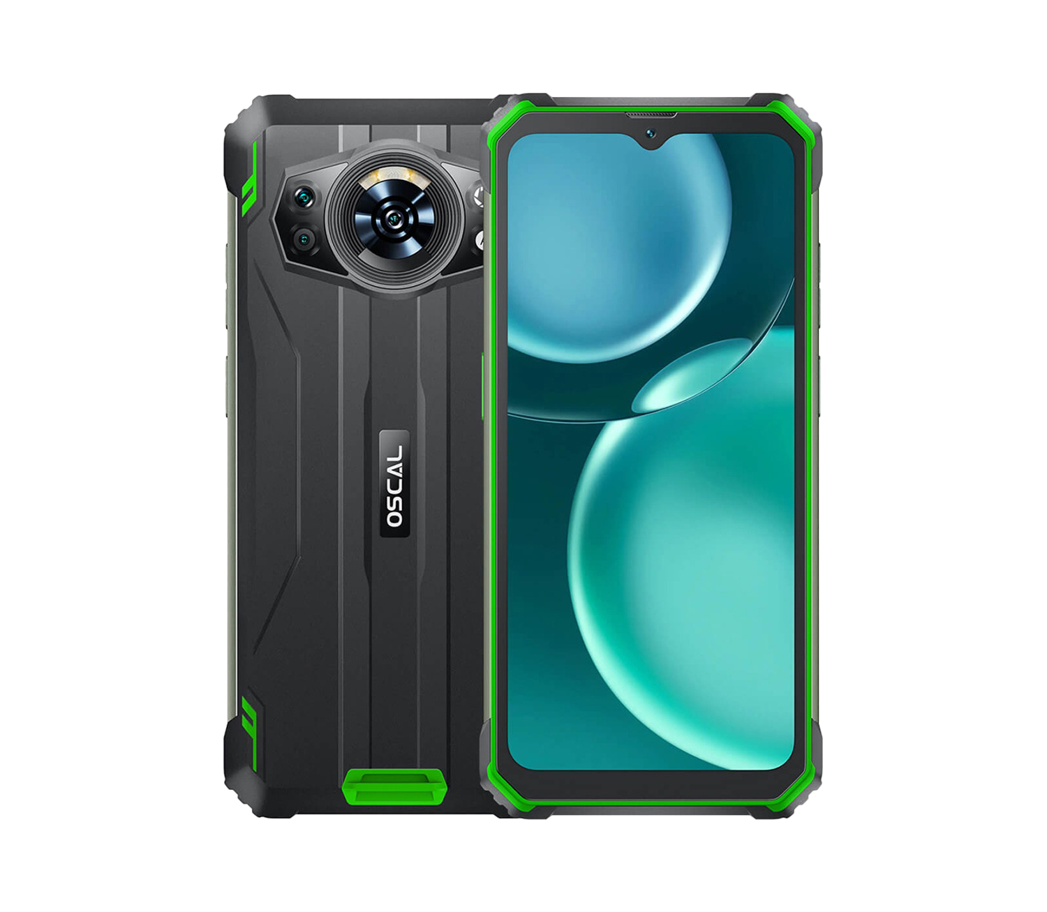Oscal S80 выполнен в прочном корпусе с усиленными углами, что позволяет ему выдерживать удары и падения. Кроме того, аппарат полностью пыле- и водонепроницаемый, так что даже если уронить его в воду или грязь, устройство продолжит работать. Стоит также отметить наличие сзади крепления под ремешок. Смартфон оснащается 6,6-дюймовым IPS-экраном с разрешением 2408х1080 пикселей. В верхней его части находится небольшой каплевидный вырез под фронтальную камеру. Сканер отпечатков пальцев встроен в кнопку включения на боковой грани. В качестве аппаратной платформы используется процессор MediaTek Helio G85, работающий в паре с 6 ГБ оперативной памяти, поддерживающей функцию виртуального расширения до 10 ГБ. Для хранения данных предусмотрен накопитель на 128 ГБ с возможностью установки карты microSD объёмом до 1 ТБ. За автономность смартфона отвечает аккумулятор ёмкостью 13 000 мАч, поддерживающий зарядку мощностью 33 Вт. До 50% он заряжается примерно за один час. На обратной стороне находится блок камер необычной формы с основным модулем на 12 Мп, ультраширокоугольным на 8 Мп и ещё одним вспомогательным датчиком. Из других особенностей смартфона можно отметить наличие отдельной программируемой кнопки для быстрого доступа к разным функциям. Кроме того, в нём есть NFC, что позволяет бесконтактным способом оплачивать покупки.