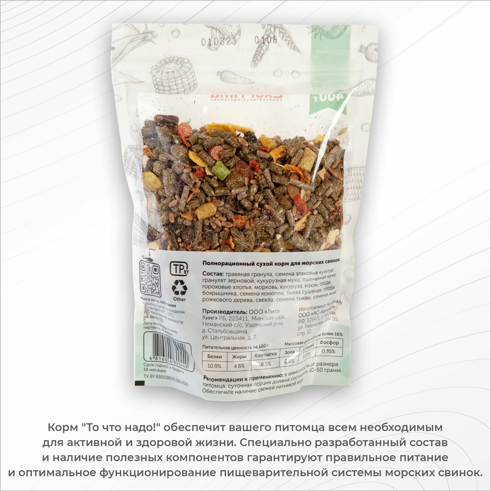 Корм "То что надо!" обеспечит вашего питомца всем необходимым для активной и здоровой жизни. Специально разработанный состав и наличие полезных компонентов гарантируют правильное питание и оптимальное функционирование пищеварительной системы морских свинок.