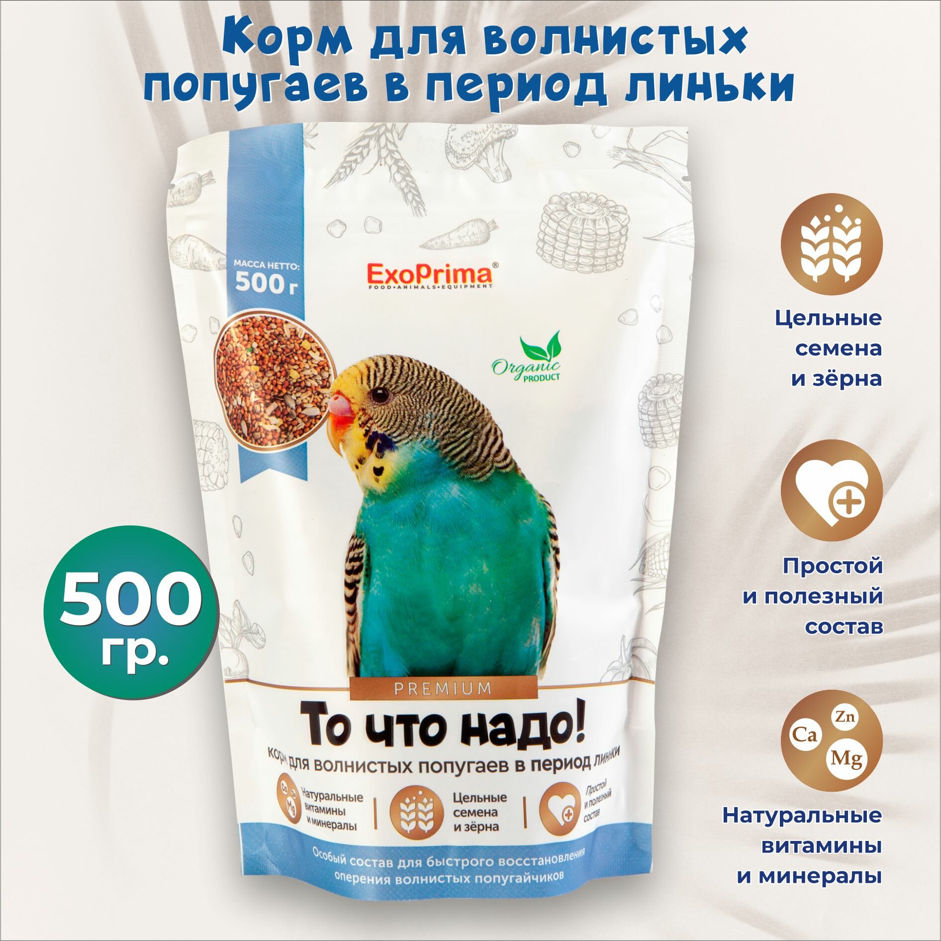 EXOPRIMA То что надо! Корм для волнистых попугаев в период линьки 500г (00401/EP)