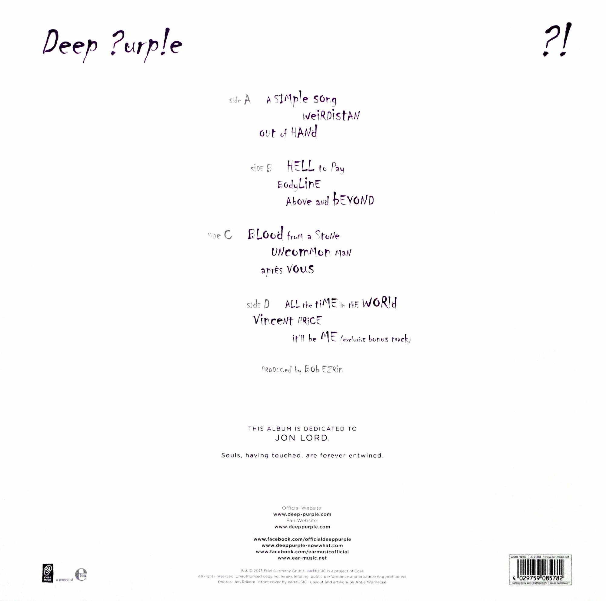 Девятнадцатый студийный альбом Deep Purple, вышедший в 2013 году. Deep Purple была основана в Британии в феврале 1968 года и стала символом тяжелого рока 70-х. Группу считают основателями хард-рока, а также приписывают в заслуги развитие жанров хеви-метала и прогрессив-рока. Золотым составом включает гитариста Ричи Блэкмора, вокалиста Иэна Гиллана, бас-гитариста и автора песен Роджера Гловера, барабанщика Иэна Пэйса и клавишника Джона Лорда.