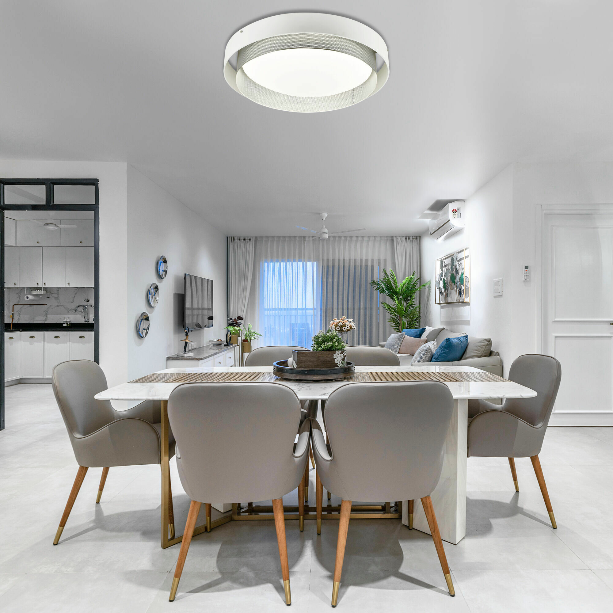 Потолочный светильник с управлением по Wi-Fi 90287/ белый/серебро Smart поможет организовать качественное освещение на площади 9 м кв. и украсить современный интерьер. Высокотехнологичный светильник оснащен энергоэффективными SMD светодиодами мощностью 50 Вт, создающие световой поток 3470 лм. С помощью мобильного приложения Minimir Home можно регулировать яркость и цветовую температуру, доступную в трех значениях: 3300, 4200 и 6500 К. В производстве LED светильника использовали высококачественный металл с надежным защитным покрытием. Потолочный светодиодный светильник подходит для установки на любые поверхности, в том числе монтируется в натяжные и подвесные потолки.