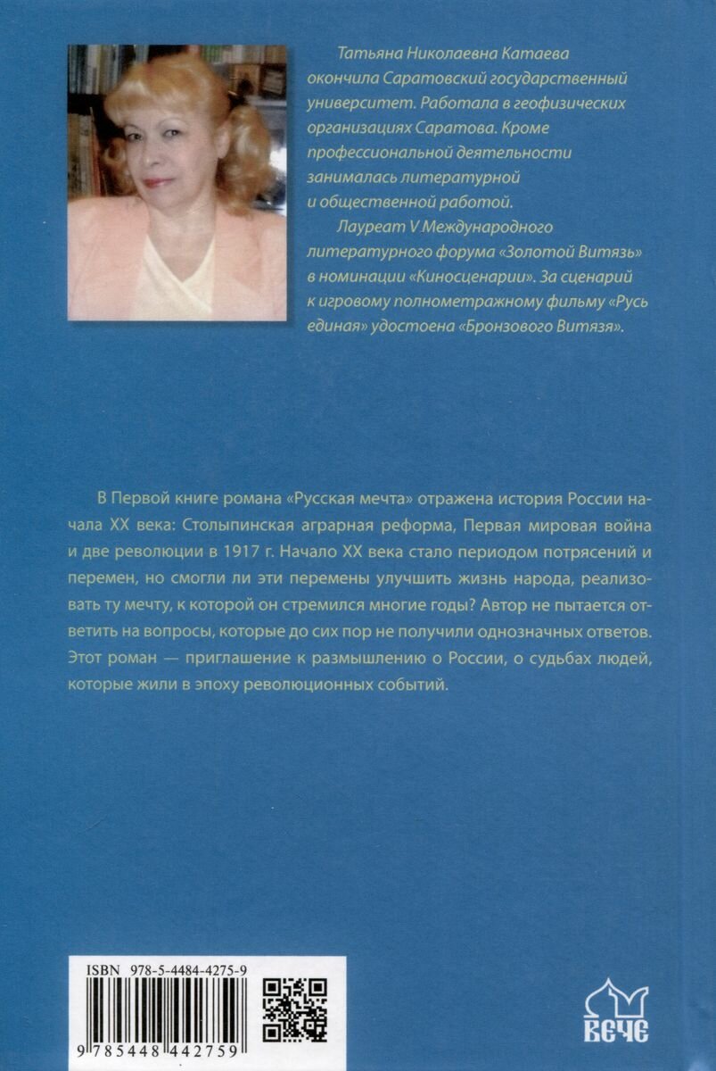 В первой книге романа «Русская мечта» отражена история России начала XX века: Столыпинская аграрная реформа, Первая мировая война и две революции в 1917 г. Начало XX века стало периодом потрясений и перемен, но смогли ли эти перемены улучшить жизнь народа, реализовать ту мечту, к которой он стремился многие годы? Автор не пытается ответить на вопросы, которые до сих пор не получили однозначных ответов. Этот роман — приглашение к размышлению о России, о судьбах людей, которые жили в эпоху революционных событий.