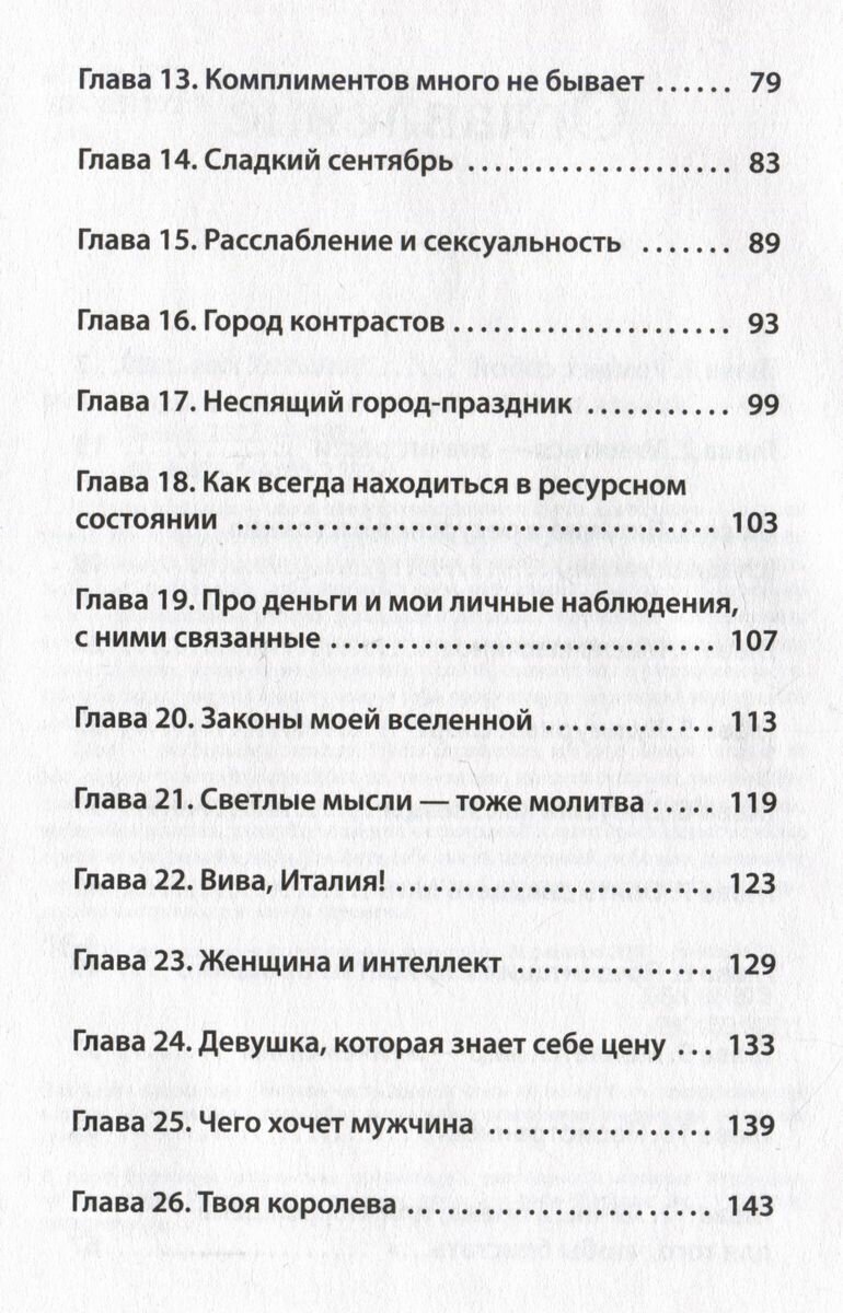 Мир - это большое зеркало. Пусть отражение, которое зависит только от вас, радует. Чувствуйте кожей всё то, что "ваше", дышите счастьем, заигрывайте с жизнью, множьте поводы для улыбок, доверяйте себе, коллекционируйте победы, выбирайте роскошь, смакуйте моменты наслаждений и легко преодолевайте любые препятствия, делайте паузы, любите себя самой искренней любовью, познавайте чистую дружбу и красивые любовные союзы. А истории автора помогут Вам правильно настроиться и начать перемены.