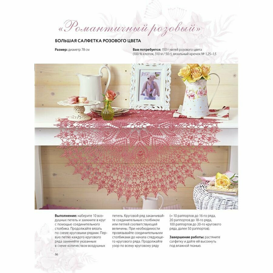 Классика вязания крючком! В этой книге вас ждет необыкновенная коллекция из 50 моделей салфеток, настольных дорожек и скатертей, связанных крючком. Модели, выполненные ажурным вязанием и вязанием в филейной технике, непременно порадуют вас своим изяществом и эффектным видом. Тем более, что связать любую из них вы сможете буквально за считаные часы (в случае скатертей — дни), освоив приемы вязания крючком и филейного вязания по базовым курсам, также включенным в эту книгу. Каждая модель сопровождается фото, списком необходимых материалов, описанием и схемой вязания. Выберите любую, какая вам нравится, и с радостью отдайтесь любимому творчеству!